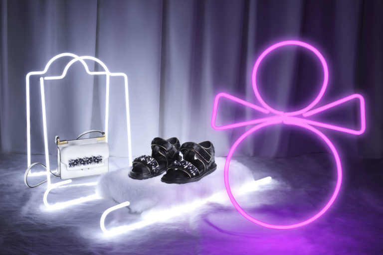 Among other things, the collection is made up of items which are in part based on the brand’s older models. Crystal Christmas presents a sized-down version of the Marni Trunk handbag – Micro Trunk. The handbag remains faithful to its classic shape, but is now adorned by expensive crystals, the layout of which creates saffron flowers. And although these saffron flowers will probably not be a joy to smell, the certainly will be a joy to behold!