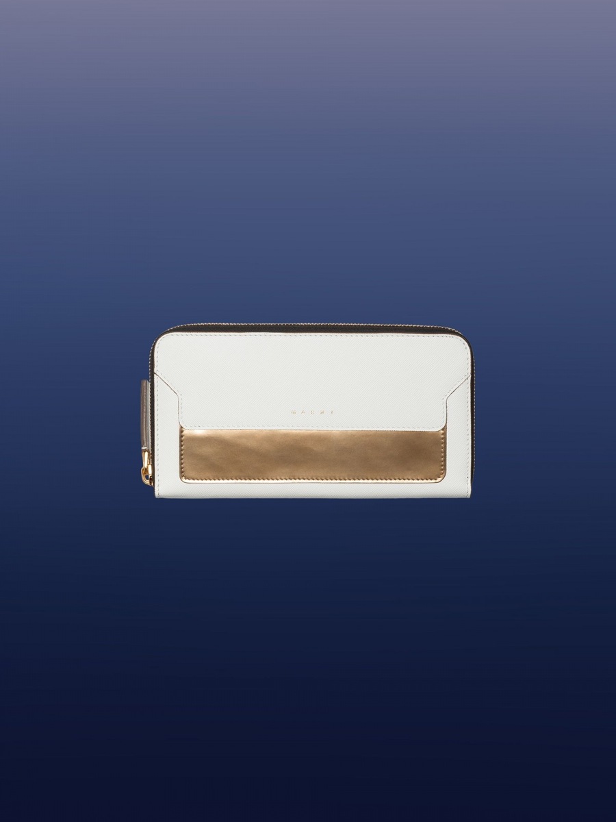 The Italian Marni brand has prepared a mini collection of luxurious accessories for you which is full of snow-white things with hits of gold. Some of them are also lit up by precious stones and crystals. Stylish handbags, wallets and bag charms in unusual shapes, made from luxurious leather and metal – these are the dominant features of the collection which come together to create sophisticated elegance!