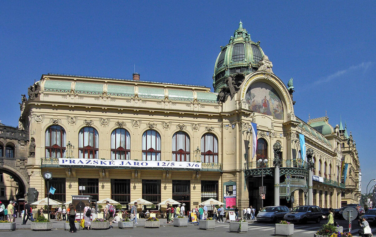 Městská pojišťovna (The City Insurance Company) in Old Town Square bears neo-baroque elements. Art Nouveau is noticeable also in respect of the Obecní dům (Municipal House) of the capital city of Prague. It is an architectural luxury pearl in the Republic Square in the neighbourhood of Prašná brána (Powder Gate). This representative, stately building is historically in a strategic place, because here starts the so-called Královská cesta (Royal Avenue). Autonomy of Czechoslovakia was proclaimed here and in November 1989 the Civic Forum was assembled here, meeting the representatives of the communist regime. He also made design plans for the building which houses the largest insurance company in the world, Assicurazioni Generali S.p.A., on the corner of Wenceslas Square.
