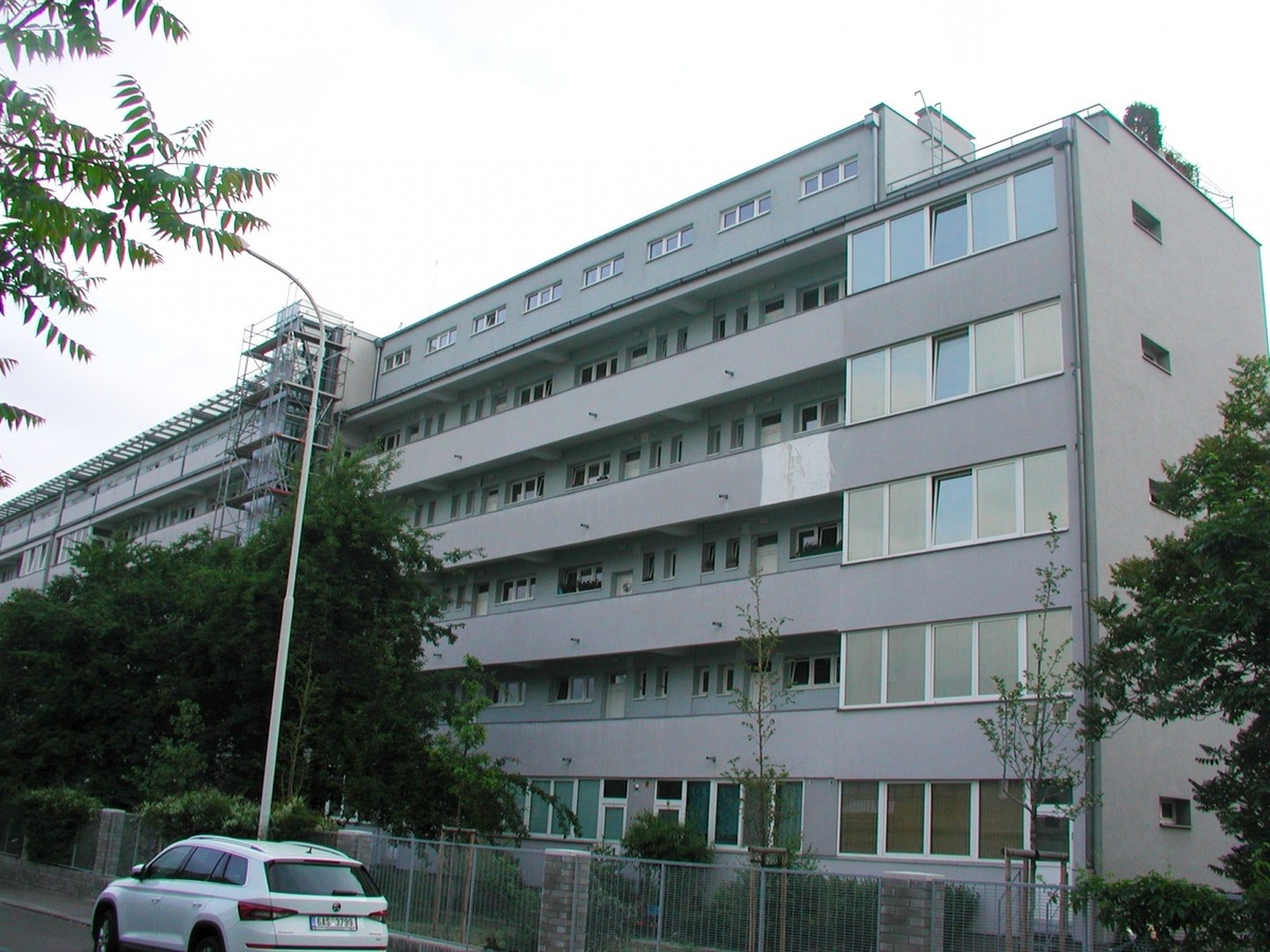 If we also add respect of purity and function to his strong points we will have the entire description of his talent. Entire residential colonies and blocks of flats were built in his style. The complex in the district of Vršovice in Prague, where Libra designed flats for government employees, is interesting and simultaneously deluxe. This is also the first unusual design for eighteen-storey buildings built on a hillside in Prague in a so-called open block style: a park with children’s playgrounds in the inner court. He designed family and weekend villas, sanatoriums, hospitals, etc. He was essentially a person who enjoyed creating, who loved music, books and cars. That was F. A. Libra.