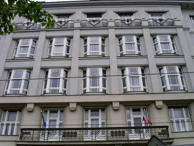 We can classify Jan Kotěra among the Art Nouveau architects, despite the fact that after 1910, he gravitated more and more towards contemporary classicising tendencies. His buildings for example include Všeobecný penzijní ústav on the banks of the Vltava or the luxurious Lemberg Palace in Vienna. The architect’s former signature is recalled here in use of bare brickwork around the windows on the first floor.