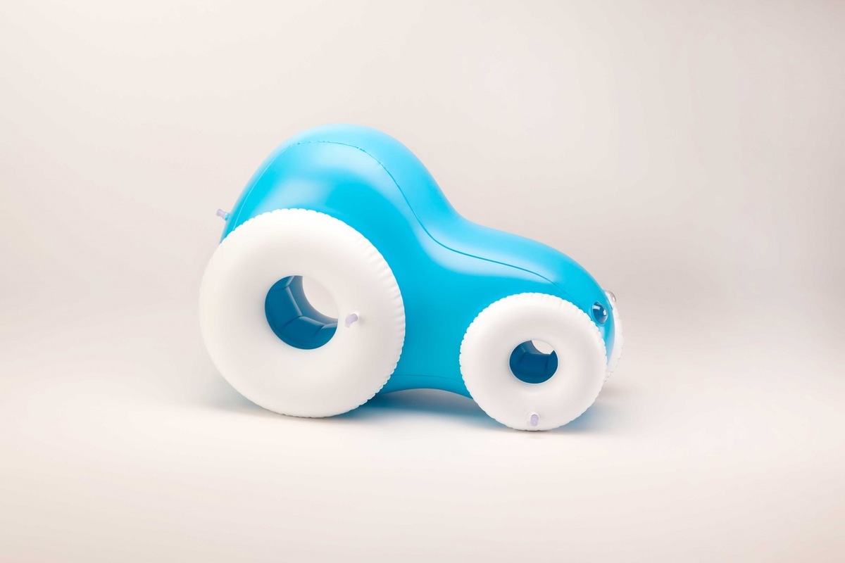 It is the basic material of all inflatable toys. It is then put together by high-frequency PVC welding. To start with, there must be a design project. And as we´ve said it before, the above-mentioned artists succeeded luxuriously. Jan Čapek designed a Dog and a Formula One, Jerry with his wife Anička designed a Goat and a Tractor, Zuzana Lednická then made a graphic design of interesting print layouts for inflatable balls. Anna then independently created a luxury series of inflatable boats.