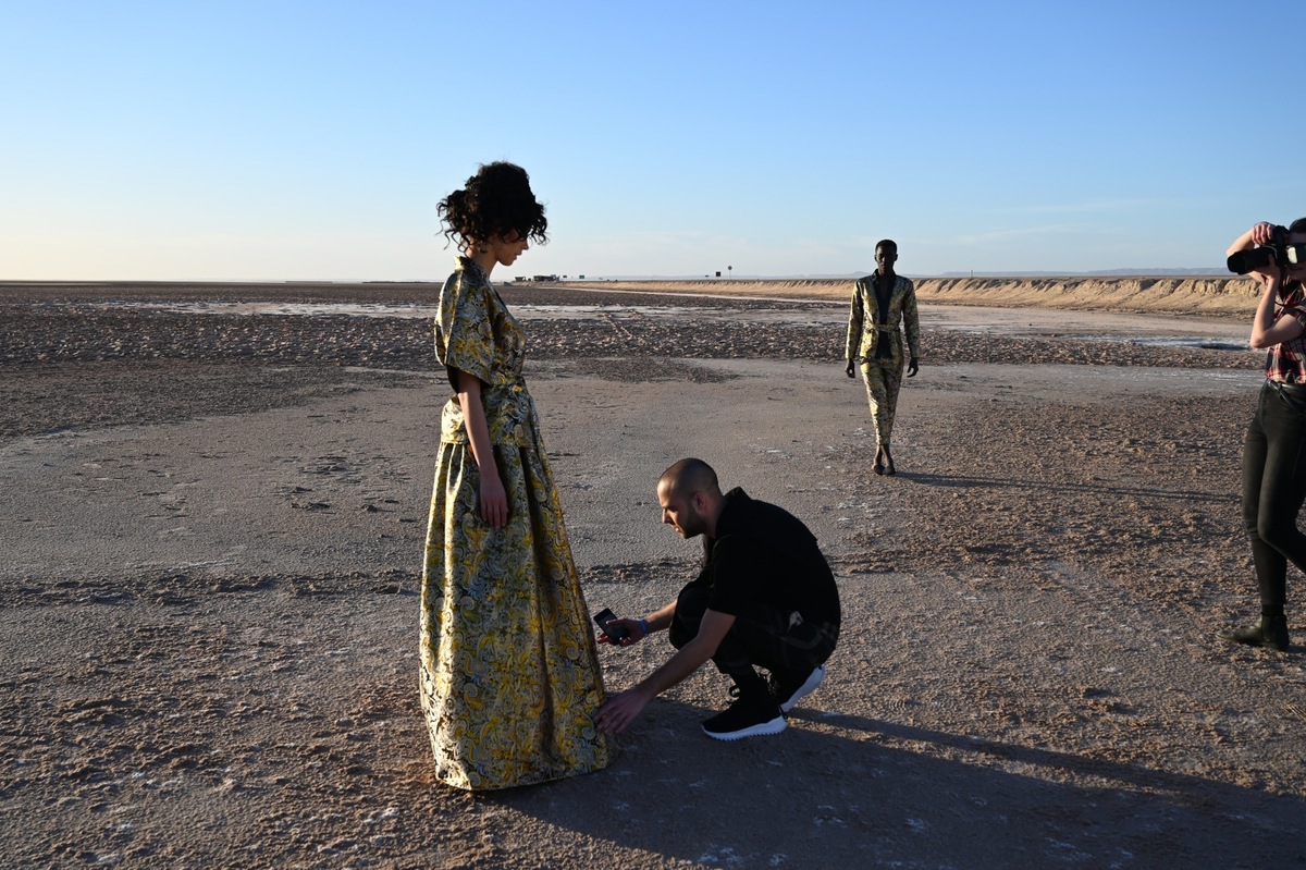 His collection is to be photographed in Tunisia. He made the photographs in the Sahara Desert, in the surroundings of the Tozeur oasis and at the bottom of the largest saline lakes of North Africa, Chott El Jerid. The faces of the collection are model Kateřina Wohlmann Votavová and Tunisian model of Senegalese origin, Mangane Alioune Badara.