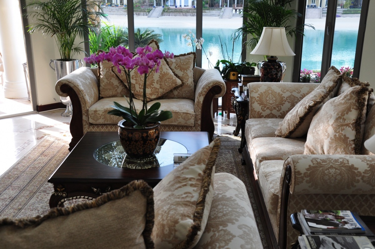 In total, the project comprises 1,354 villas and 220 town houses. Each frond of the “Palm” is marked with a letter and name (A-P) and is guarded with a gate, which can be entered only by residence, announced guests and employees. For instance frond “N-Al Naghal” features 85 Signature Villas. In general, there are 5 types of villas, of which Garden Homes are smaller (500 metres squared), while Signature Villas (700 metres squared) have larger facilities and lots. On the “trunk” are the Canal Cover Town Homes. Every type of completed villa has a typical design style: Arabic, Indian, Swiss (also called European) and others.