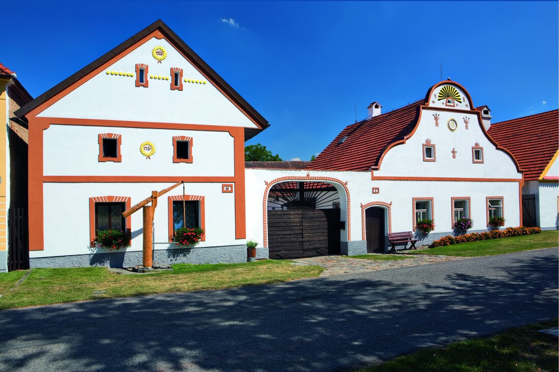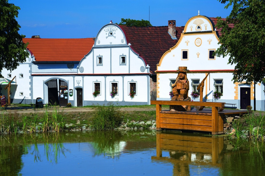 All of the above is intertwined with a powerful village atmosphere, reflected in the colorful fronts of buildings with otherwise frugal plaster decorations. The baroque village has 140 inhabitants who took a liking to this lifestyle. They feel dedicated to the artistic value of the village, honor it and respect it. The village reminds us of what life was like in a 19th century village – and it stands firm in the 21st century thanks to its stability and picturesque nature. One could go as far as to say that time flows differently here, a bit slower.