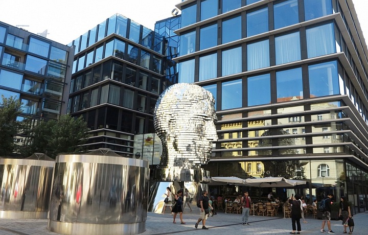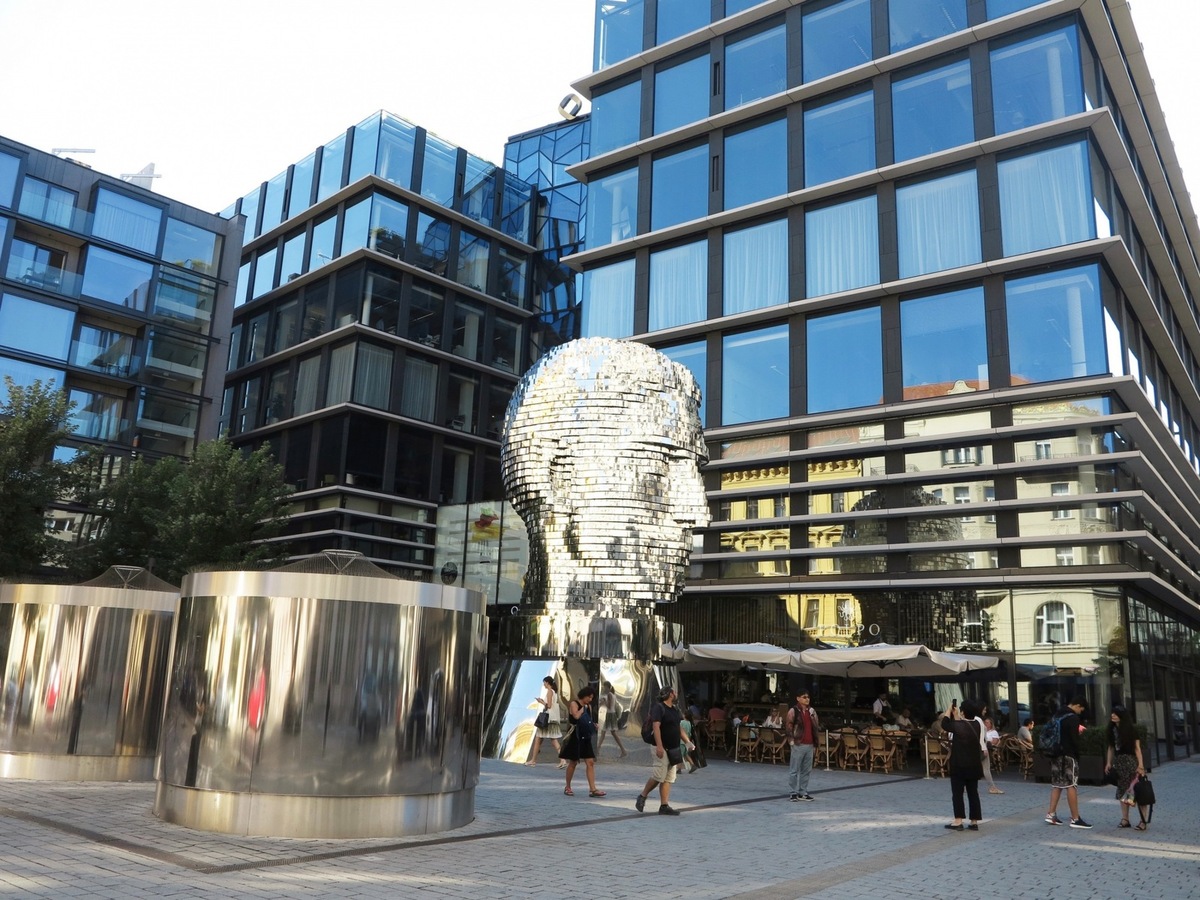 The most recently installation in downtown Prague is the head of Franz Kafka, located at the entrance to the Quadrio shopping centre. This luxurious sculpture weighs 39 tonnes, is 11 metres high and consists of 42 layers moved around by 42 synchronised motors. These 42 layers rotate around a central axis, changing the shape of the world famous writer’s face.