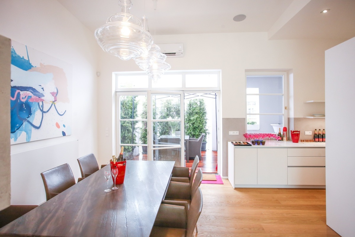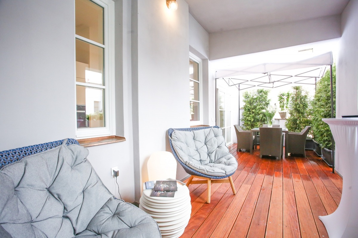 The red carpet led us to the elevator from which we entered the luxury apartment on the 6th floor. We were impressed by the beautiful elegant space, the airy terrace, the large white bathroom, the high-end furnishing, the absolute privacy and tranquillity in the centre of Prague.