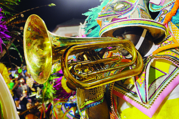 Junkanoo features luxurious colorful costumes, and dancing and music inspired by various themes. It is celebrated several times a year. Preparations for the New Year and the summer Junkanoo take months and connect men and women from various social strata of the population. Costumes are most commonly made of materials such as cardboard, crepe paper, feathers and beads, with an incredible palette of colors.