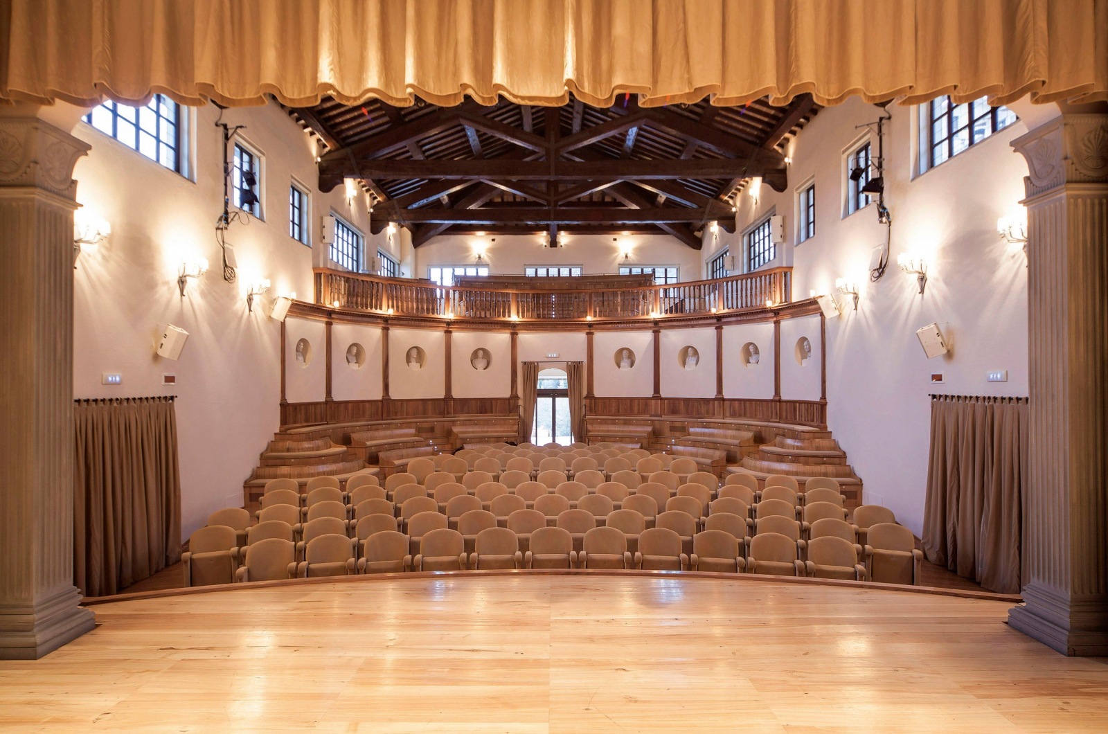 The theater is a place you definitely need to visit! You will find it in the heart of the area where the amphitheater, "Ginnasio"garden and the non-humanist academy are located. The unique building has a parallel ground plan and is built on a high platform, accessible by a magnificent staircase. The luxurious interior is decorated with subtle shades and austere trusses made of rough oak beams.