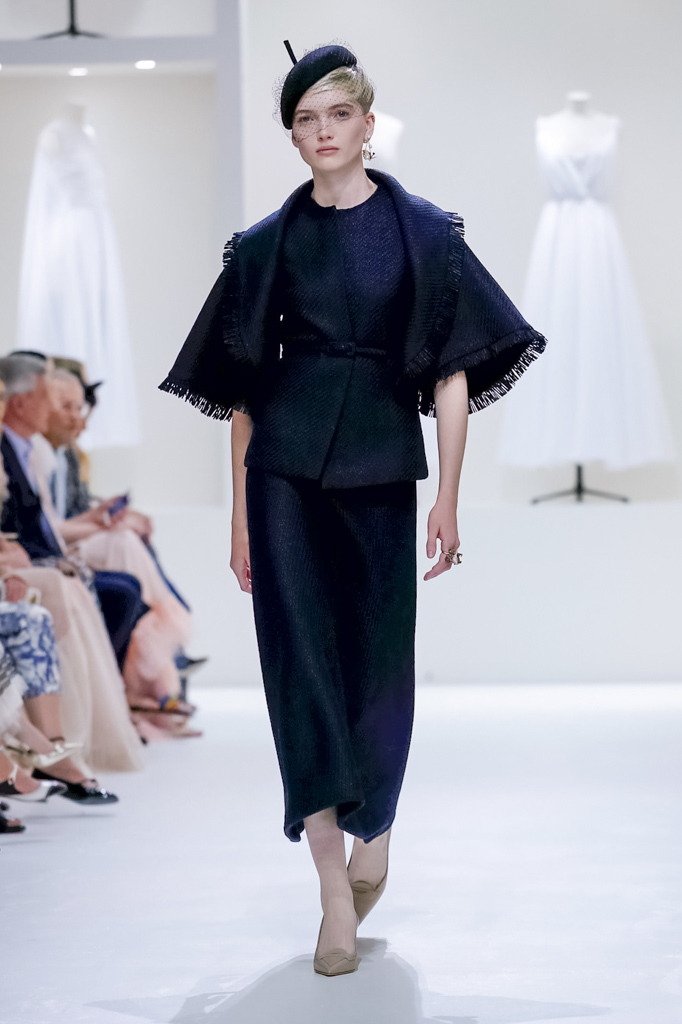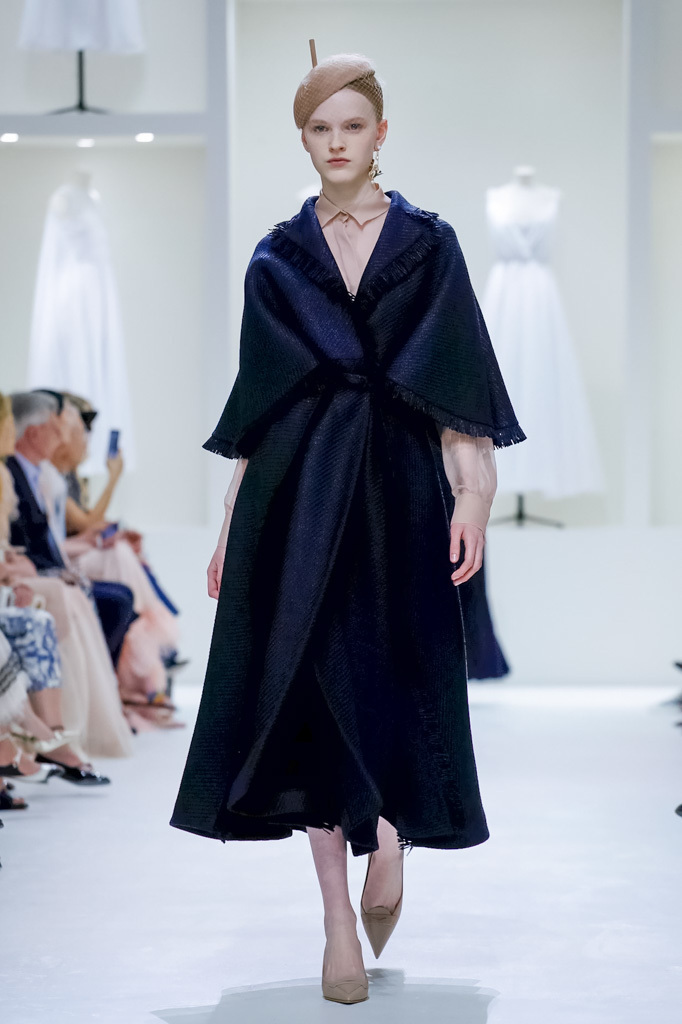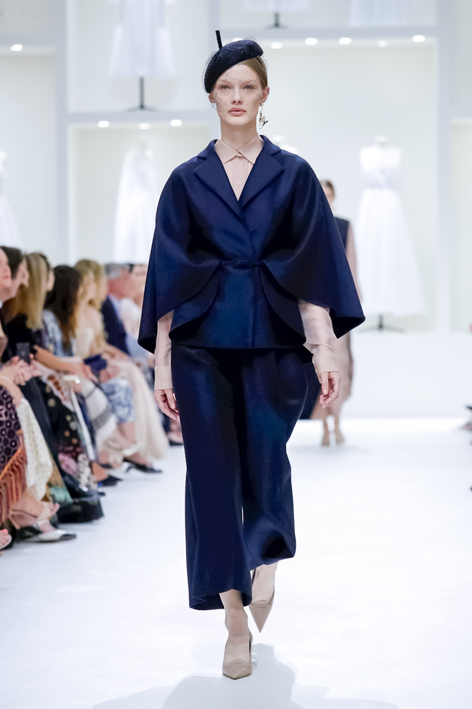 Strangely enough, this time round, the evening gowns did nothing for me, from the whole show they seemed really to be the most boring. Moreover, this year, similar pieces could be seen in other fashion houses, too. At first glance I was charmed by the sapphire-blue blue dress, suits and coats. The greatest hit is definitely the dark blue jacket with tassels. Wide loose sleeves, a concealed belt accessorised by the powder-pink beret with a mesh...amazing! Perfect for autumn city walks, grand style.