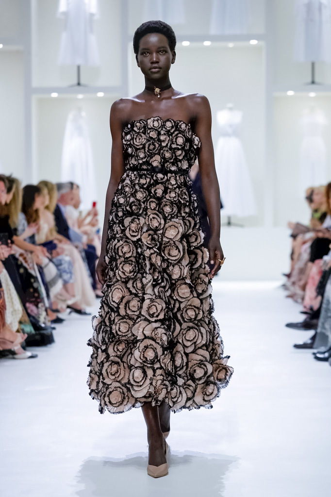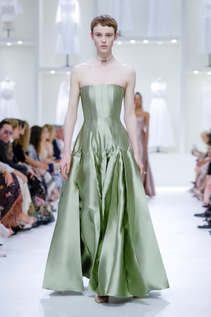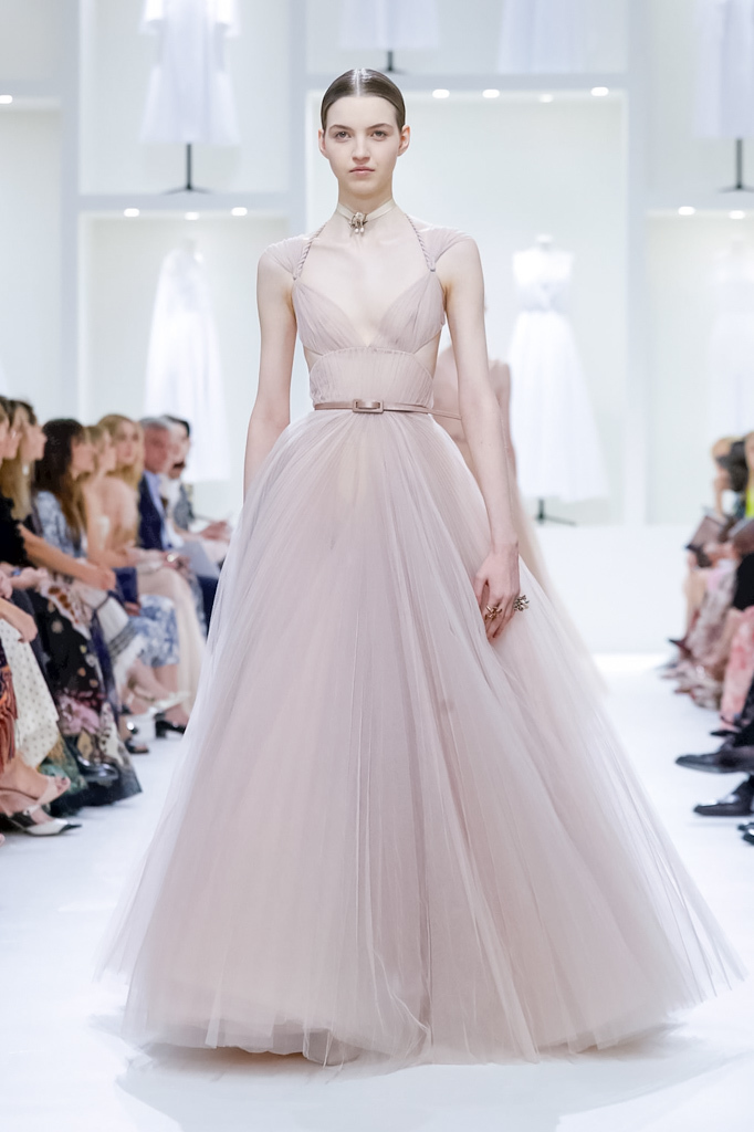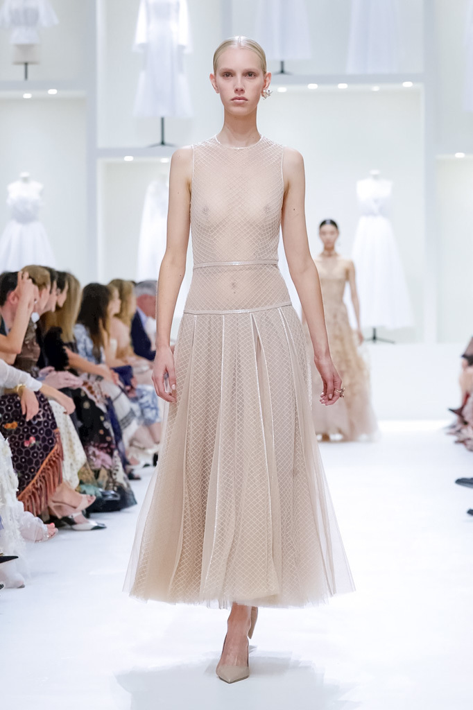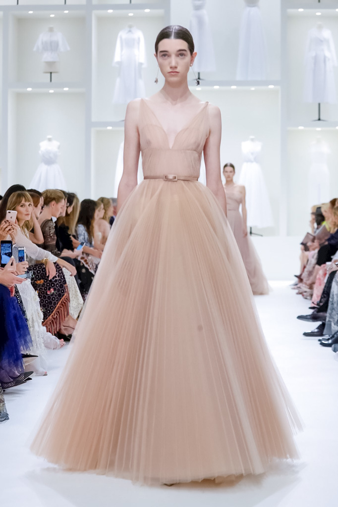 The most extravagant models of the luxury Haute Couture collection include evening nude-coloured gowns, where Dior placed a bet on transparency. Although the ruched skirts cover what is necessary, in the area of the décolletage there is not much left to the imagination, reveal almost all.