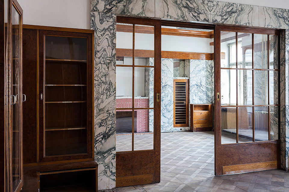The architect was painstaking about creating space worthy of its owner. He did not skimp on ornamentation, diversified décor, gold colour. Everything is just gleaming, sparkling, full of colours. The fabrics are non-traditional, sensitively combined. The author used natural materials of premium quality, the entire area then reflects the masterly taste of the author. During occupation the family of Josef Vogl had to escape to Canada. The space so artistically unique was thus occupied by the Germans, who in the building established a Labour Office. And the time passed. At the present time it houses Administration of Public Property of the City of Pilsen.