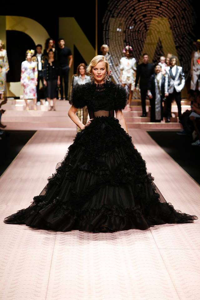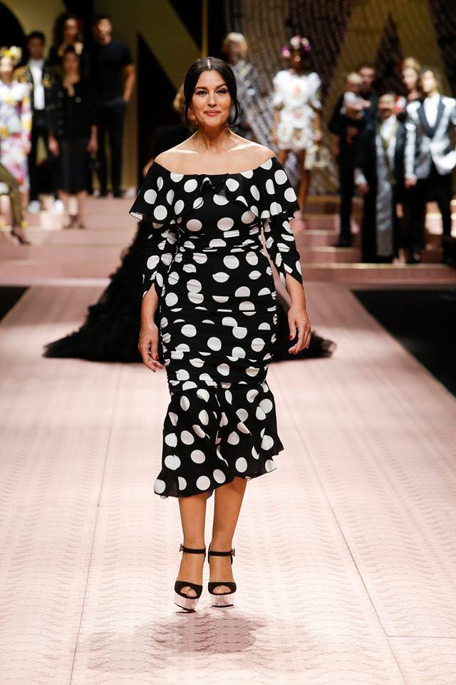 Domenico Dolce and Stefano Gabbana presented a breathtaking show during fashion week that deserves a big applause. Thanks to them, famous beauties can announce their COMEBACK. The first on the catwalk was the beautiful and charismatic Monica Bellucci in a black polka dot dress and our top model, Eva Herzigová, who presented a gorgeous black gown. In addition, other well-known women such as Helena Christensen, Carla Bruni, Marpessa Hennink and Karen Elson showed up. What else was to be seen at the show?