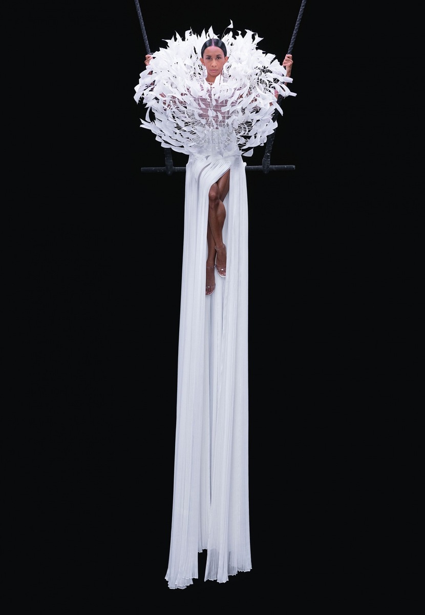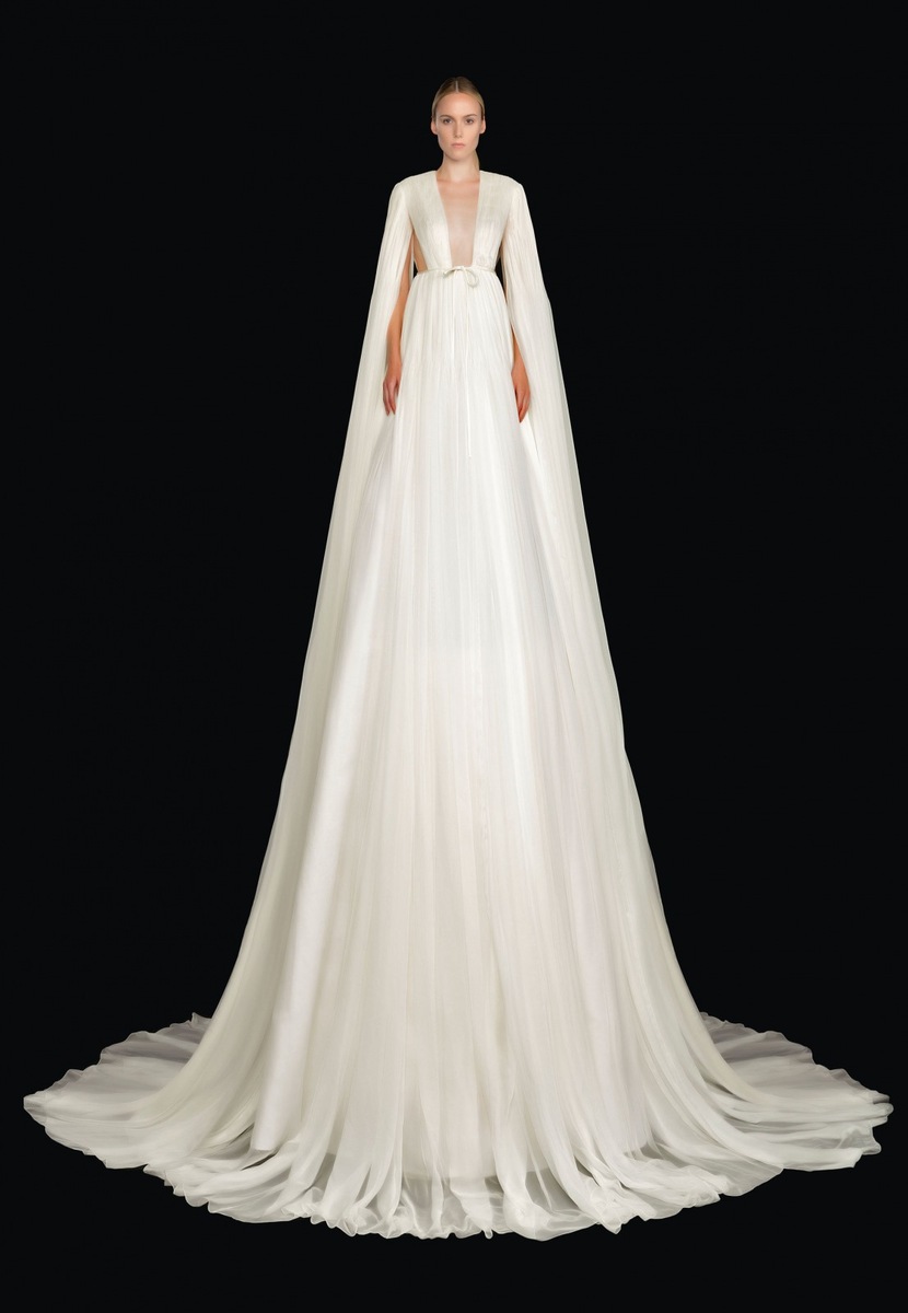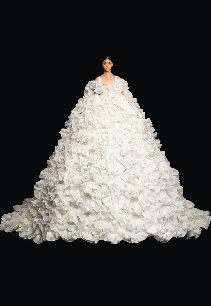 In addition to fluffy gowns tailor-made for the altar, the Italian brand also introduced luxury models full of glitter that have an entirely ethereal effect in combination with acrobatic rings.