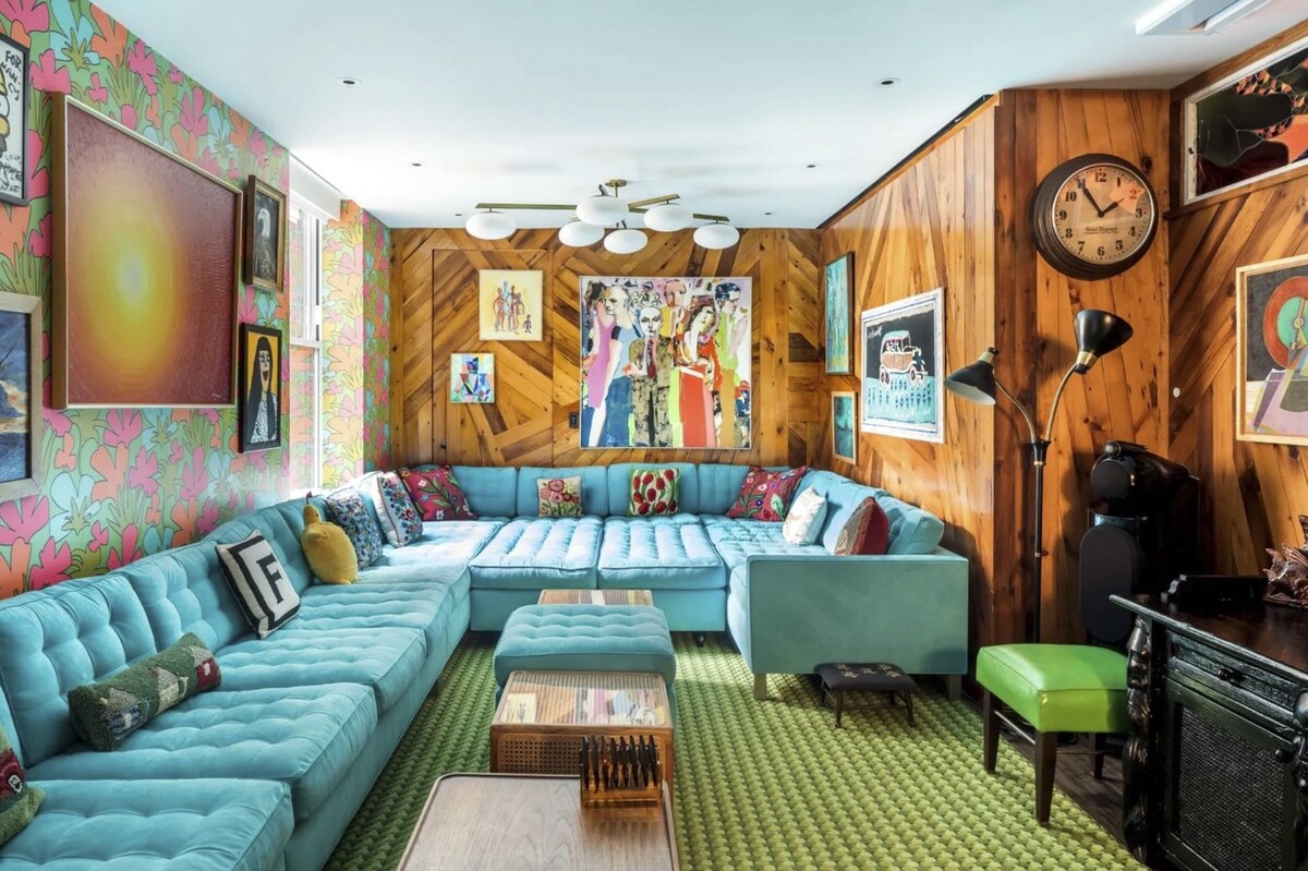 Fallon and Juvonen turned the complex into a cosy and colourful mansion. For example, they restored the original hardwood floors and window frames, dating back to 1883, when the building had been built. The interior is unique through wallpapers from the 1940s and the overall variety of colours in each room.