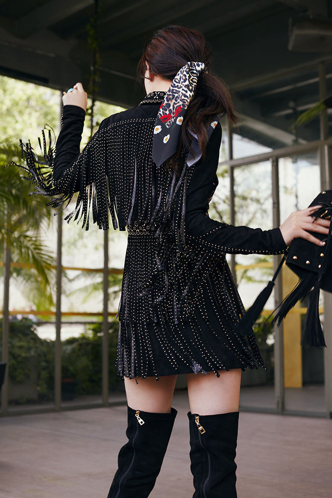Personally, I fell in love with the beige suede dress, where you determine the depth of the neckline yourself using a sophisticated string. Combined with those "oversized" sunglasses, loose hair and sexy boots, this is a very provocative model. It's so sexy that married ladies should think twice about whether to wear something like that (of course, I would wear it!!!).