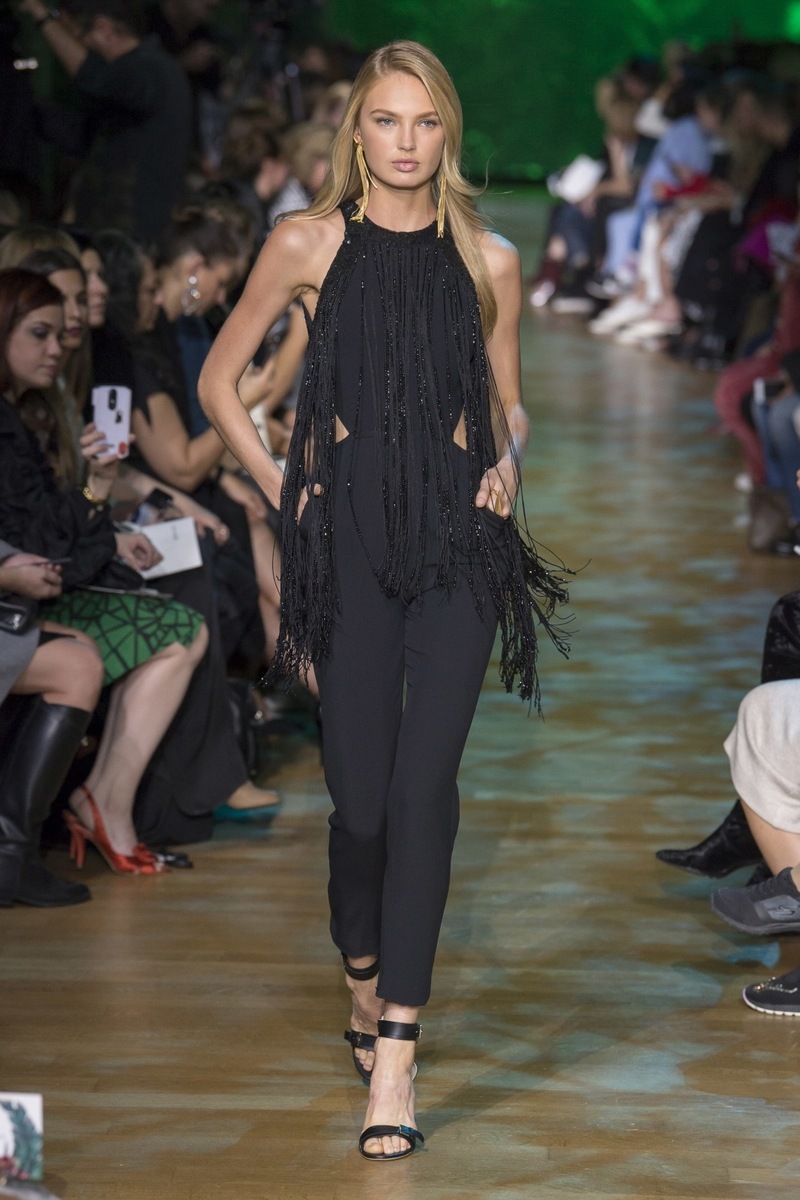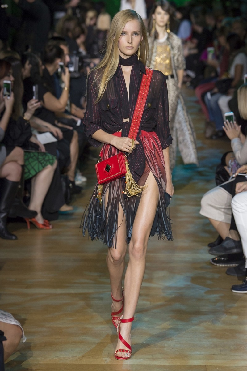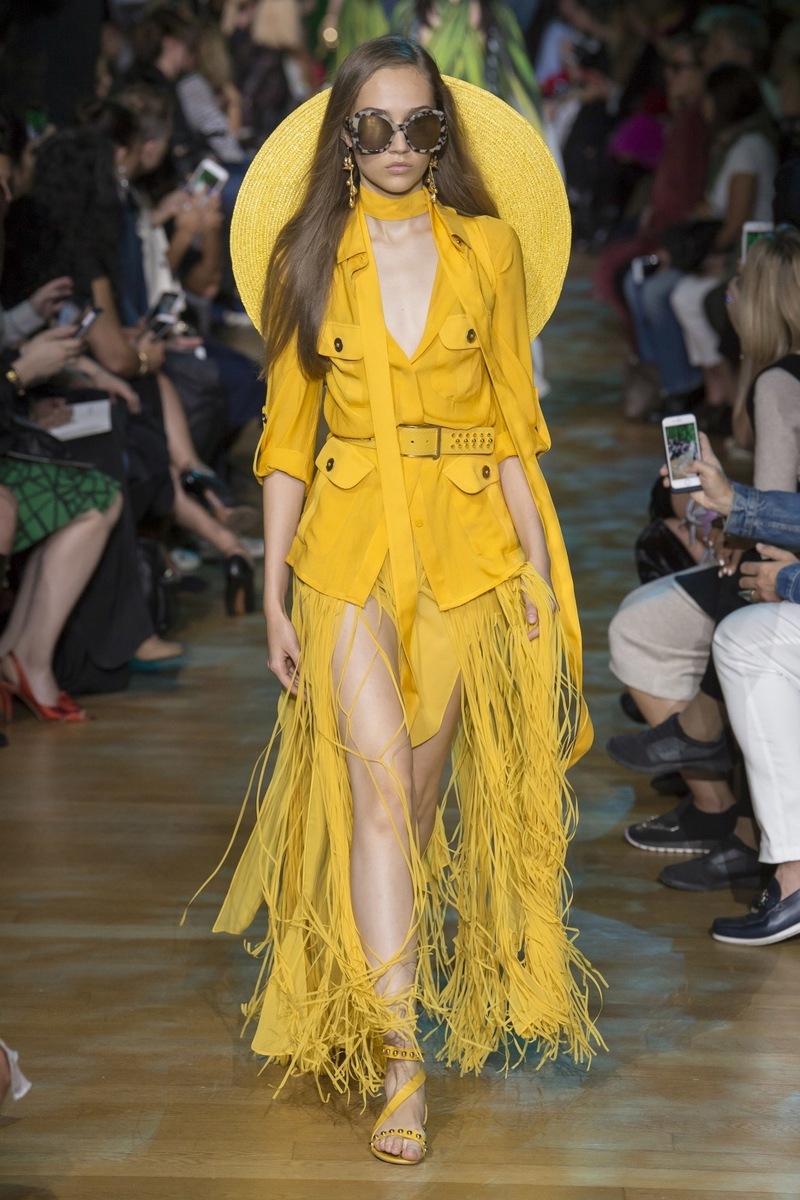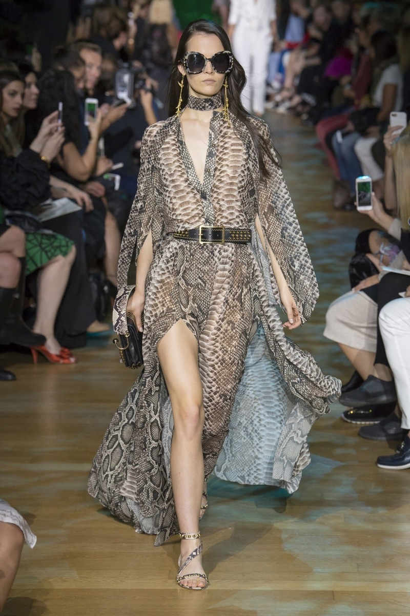 Breathtaking evening gowns full of silk, lurex, sequins and python print, caftan dresses of chiffon with tropical patterns, dresses and tops with dancing fringes, elegant blazers and leather jackets with colourful embroidery featuring exotic flowers. Elie Saab decided that the S/S 2018 collection would feature a wealth every item in the female wardrobe. Permitted length? No limit! Mini, midi and maxi!