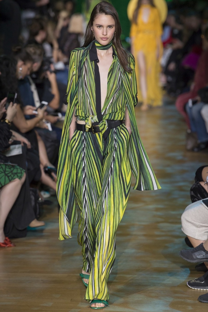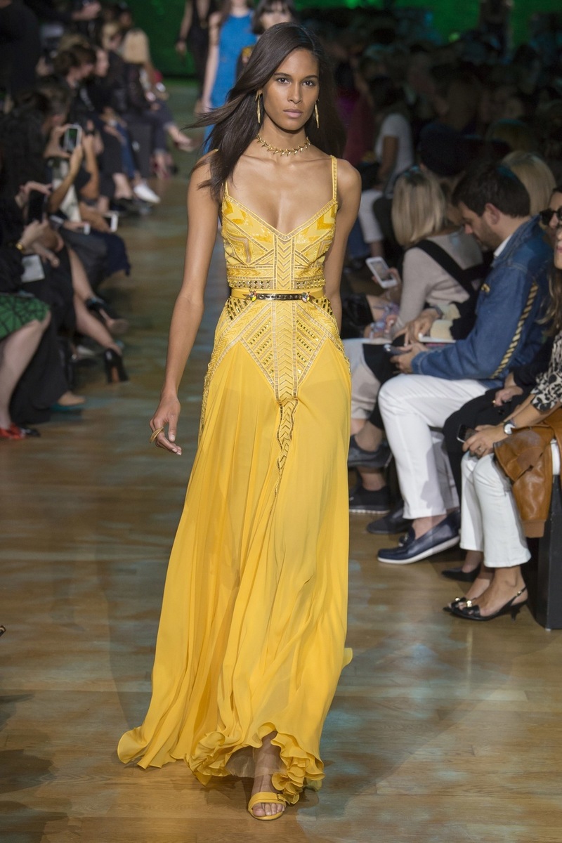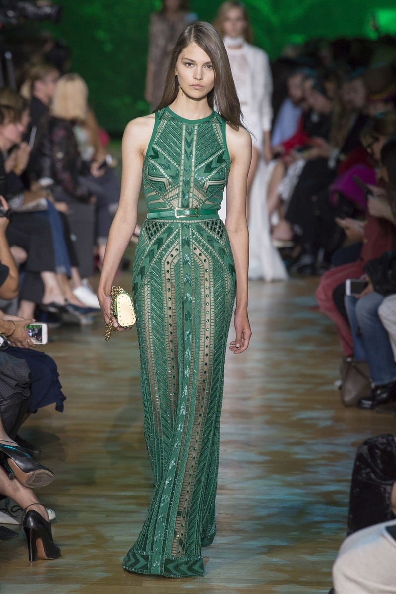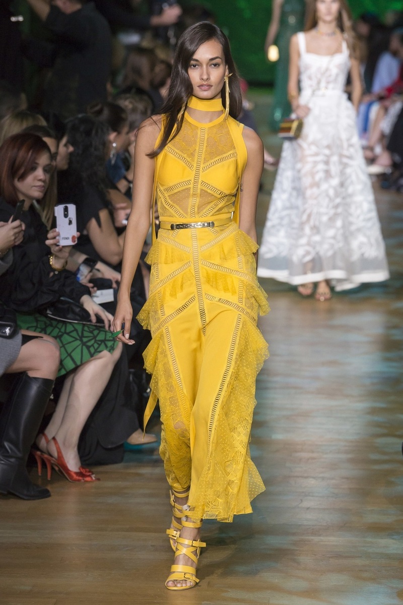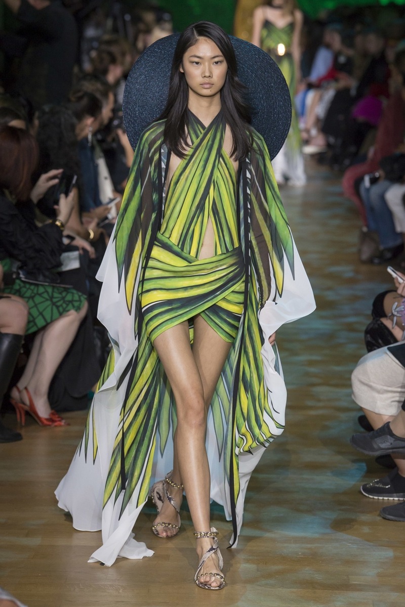 Talented Lebanese designer Elie Saab truly put on a luxurious show. The designer worked with a rainbow of colours inspired by the Amazonian rainforest. Bright green, canary yellow, sensuous red, sea blue. Garments in the bright and vivid colours of Amazonian birds of paradise lit up the catwalk!