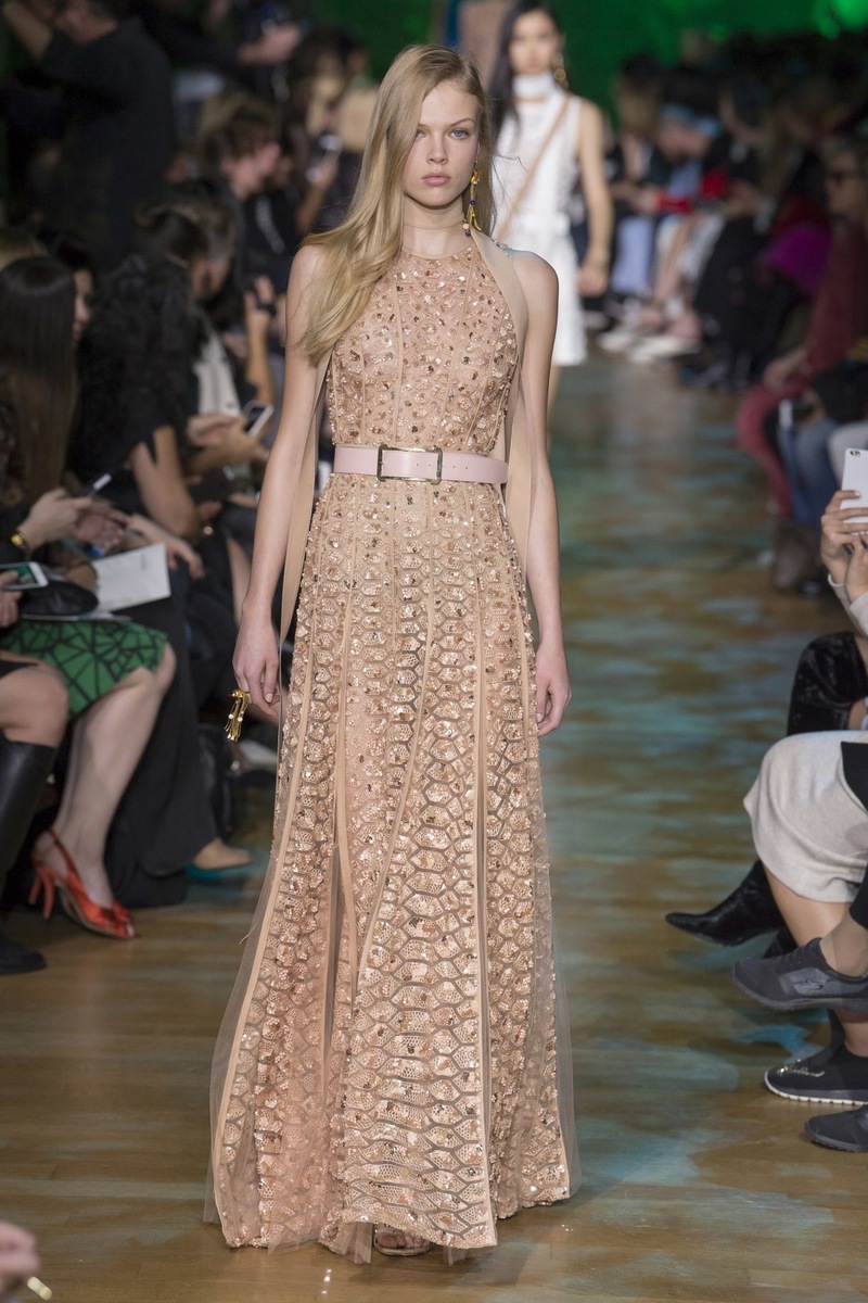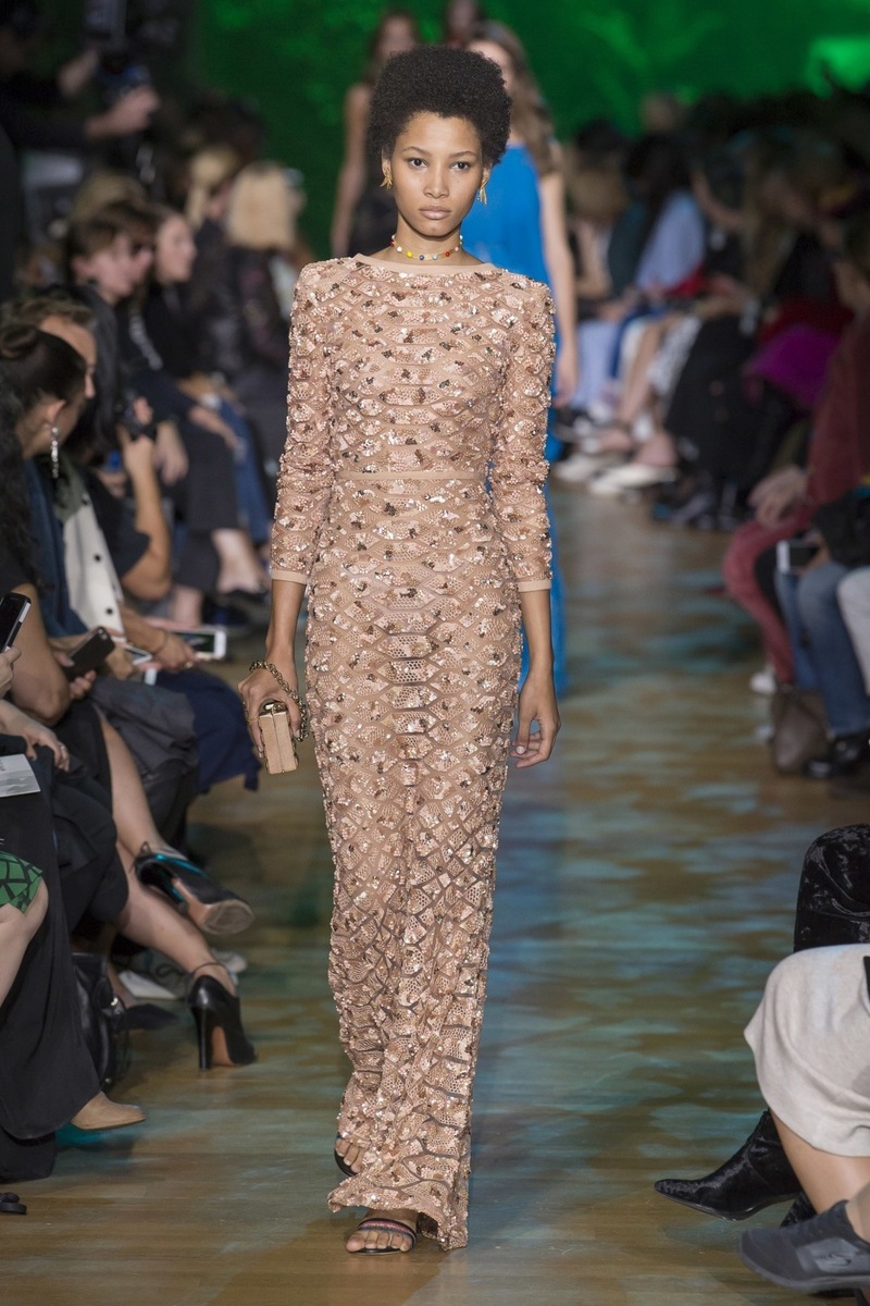 The wild rainforest isn’t the only concept underlying the S/S 2018 collection. The sea was another source of inspiration. Ocean blue is the symbol of exclusive holidays, but because Elie Saab mainly designs evening gowns, you shouldn’t expect bikinis in his collection. You can set off on a luxurious sea cruise in one of his stunning sequined evening gowns, choosing from azure blue or romantic coral.