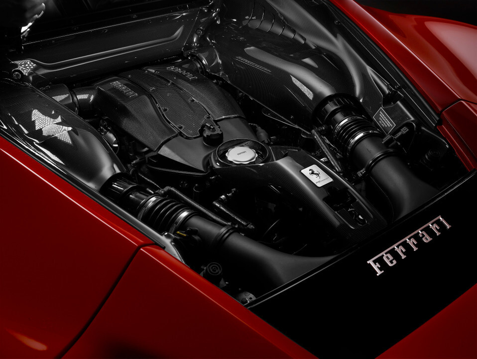 The luxury design was drawn up by the Ferrari brand itself, as it no longer relies on the work of (or collaboration with) Pininfarina when it comes to automotive design. Nowadays, Ferrari has its own design center, which built this car with focus on aerodynamics. The prow of the car is aggressively shaped, and you can find a variety of novelties here: the horizontal LED headlights, the blinds above the engine compartment and the execution of the rear spoiler.