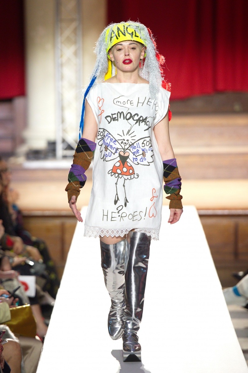 Vivienne Westwood definitely doesn’t let herself be held back by nature, and she doesn’t fret about the kind of impact the fashion industry has. The ecologically thinking designer uses fashion as a form of activism, and tries to enforce the meaning of sustainable fashion. In her eyes, what is important isn’t quantity, but quality, and she tries to draw attention to that fact with the most crazy ways. What is most important is to be eye-catching. And this designer’s collection definitely is!