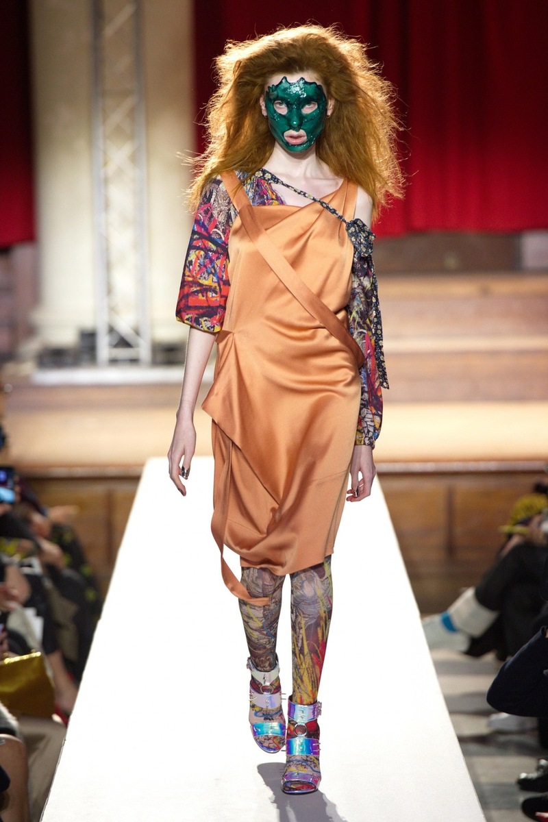 However! I found one outfit, which I truly like. And that is the evening peach coloured corset dress with see-through sandals on heels, which were worn by the grey haired old woman at the end (I’m omitting the cement grey knitwear on her elbow). Fresh, feminine and sexy... Vivienne had to really be out of it when she designed this, because it’s so beautiful.