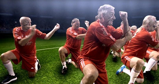 By the way - have you already seen the video? The video that Petr Salava had made for the 45th birthday of the Amfora Football Club, which has about 700 matches under its belt? There, celebrities are standing in two rows, with Jiřina Bohdalová being by far the oldest. But you can find her right in the middle. And she joins the others in the iconic haka dance, which is typically performed at the start of the New Zealand All Blacks rugby games.