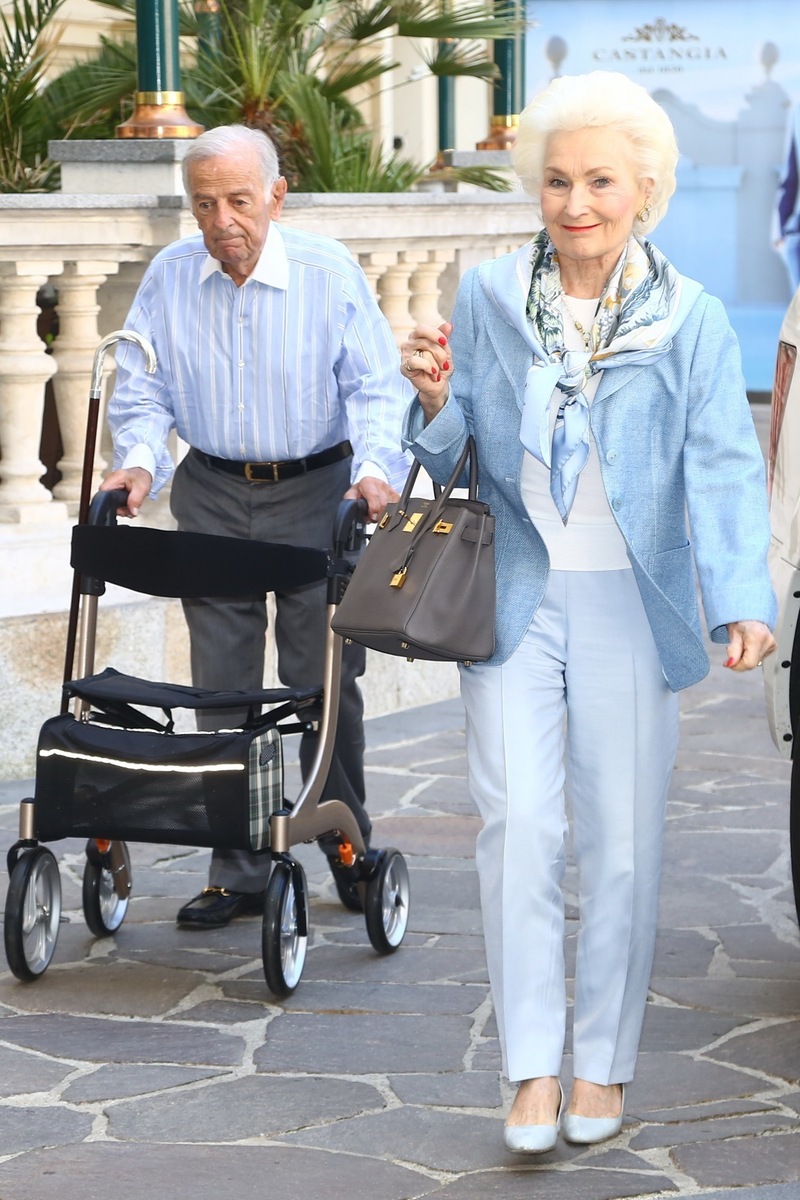 I have known Mrs Coolidge since the time when we were both going to exercise to Intercontinental. And to be honest, even in the gym or the dressing room she always made an impression of the grandest lady, with the most refined taste to boot. Simply elegant under any circumstances. And the walks through Karlovy Vary was no exception. Here we see a stylish light blue suit with a classic black Birkin bag by Hermès. Perfection!