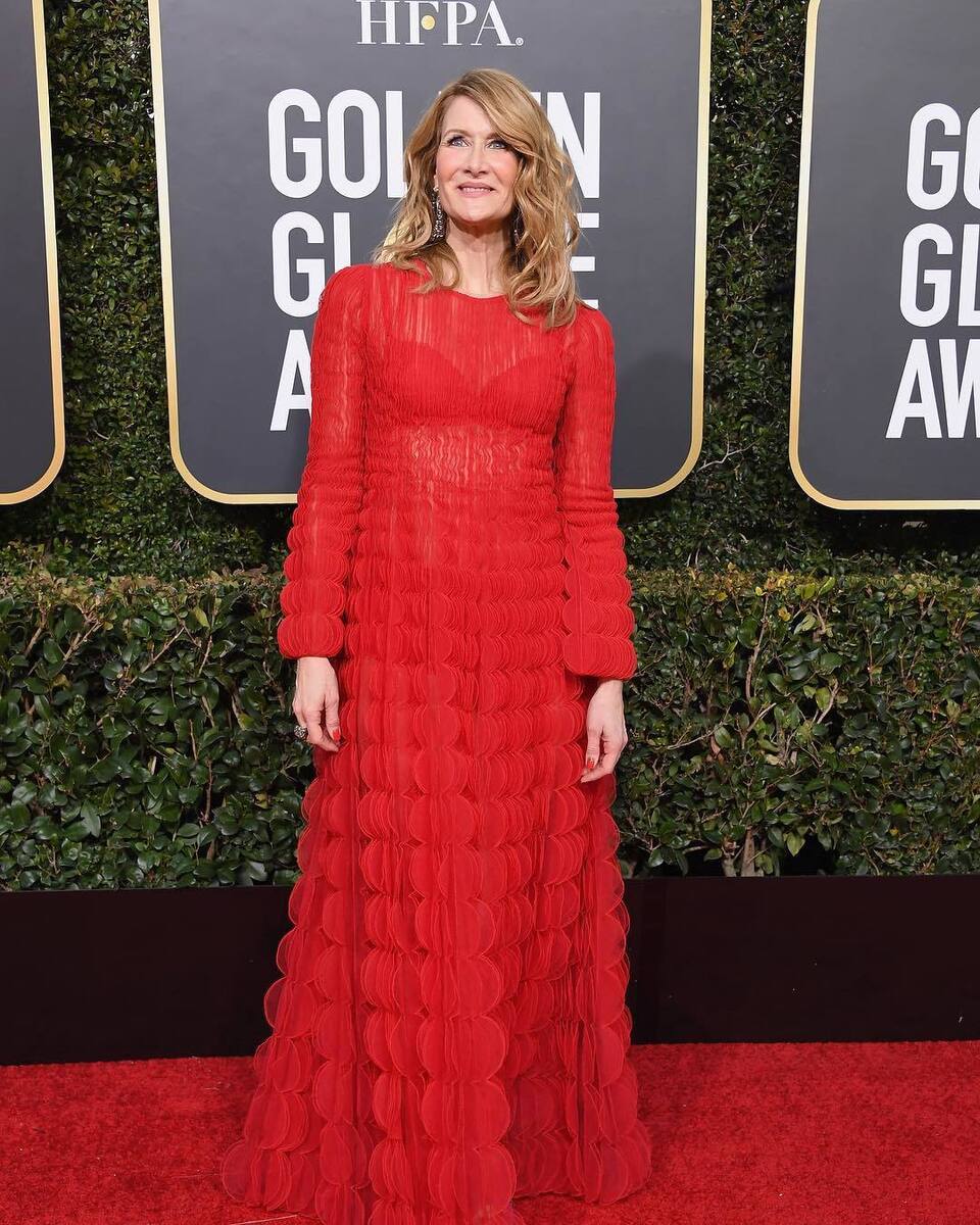 The Golden Globes ceremony was also attended by experienced actresses such as Jamie Lee Curtis, Laura Dern or Maya Rudolph. Which of these has won in our opinion? Certainly Laura Dern with her red minimalist gown by Valentino. The colour and cut are flattering and look youthful.