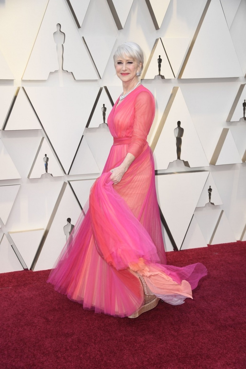 It would come as a surprise to anyone that the lady in the bright pink garment Schiaparelli is 73 years old! Helen Mirren was a glowing star of the evening, she had an energetic smile, great make-up and the neon-coloured dress made the actress look years younger. She overshadowed her younger peers with her great choice!