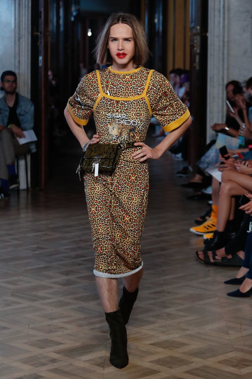 The luxurious show was kick-started by a model dressed in a piece with a wild leopard pattern and a bottle of alcohol in hand. This was followed by a wave of outfits of courageous styles, cuts, colours and transparent fabrics, which often concealed just the bare necessities.