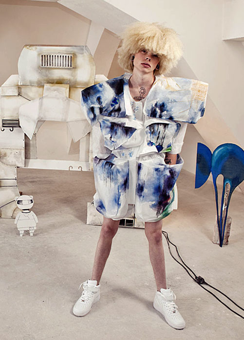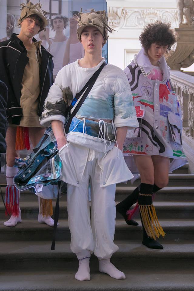 What I love most about my collection for this autumn and winter is its sense of humor. Each of my collections is always a special one, and what I like about this one is that it's stupid, ironic, exaggerated, and it even has variability. I would like to add important concepts such as recycling and zero waste cuts. For me, the key elements of the collection are hats and transformable backpack-jackets.