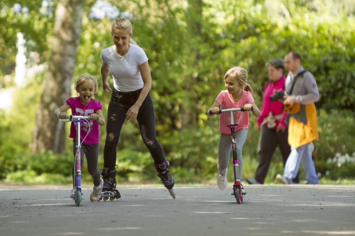 My husband and I are both very sporty, we like to travel. We make short day or weekend trips. And they‘re focused on sports a lot - we like cycling, roller skating, skiing in winter, we all play tennis.