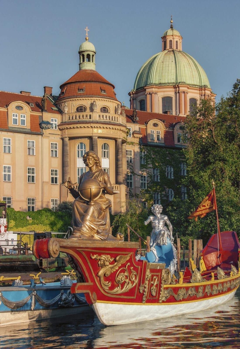 I think anyone who's been there understands. It's just this water world and it's our big role model. Among other things, Prague and Venice have always communicated and cooperated closely. Also, a lot of Prague and Czech landmarks as well as cultural and artistic monuments are created either with Venetian influence or directly by Venetian artists. For example, the mosaic on the Golden Gate at the entrance to St. Vitus Cathedral was created by a Venetian, which few people know. On the other hand, the only statue that stands on the banks of the Grand Canal in Venice is that of John of Nepomuk. We also gave the Venetians a little push to fix it. That was during the first Navalis, when a hundred gondoliers and twenty boats came here. He is also the patron saint of gondoliers and one of the main patrons of Venice.