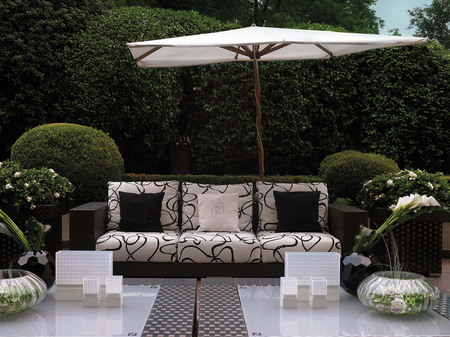 Like with a magic wand, your outdoor spaces can be transformed into the exclusive gardens that you see in photos of the most exotic world destinations. Fendi Casa uses surrounding nature to inspire and to achieve a high degree of creativity combined with comfort.
