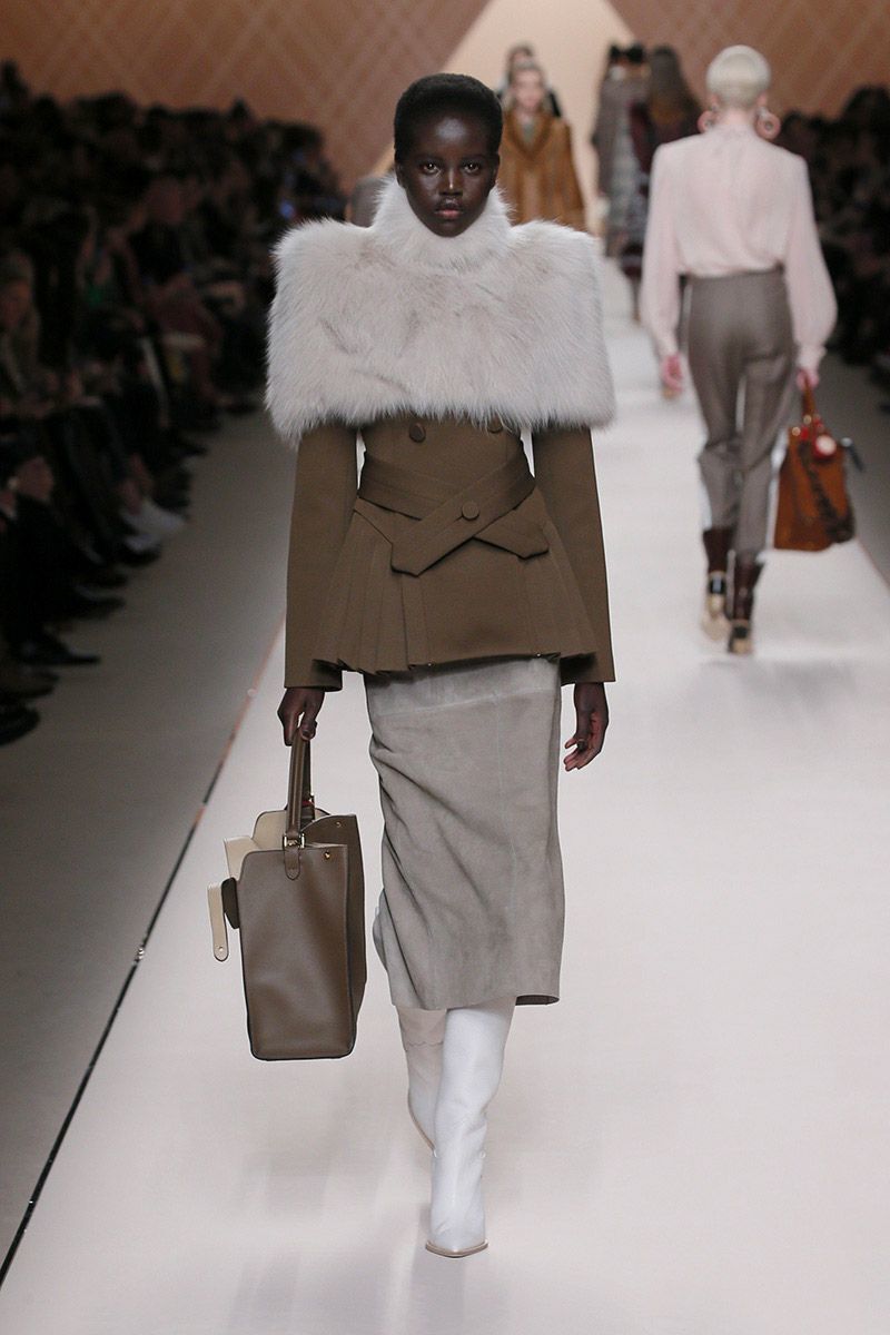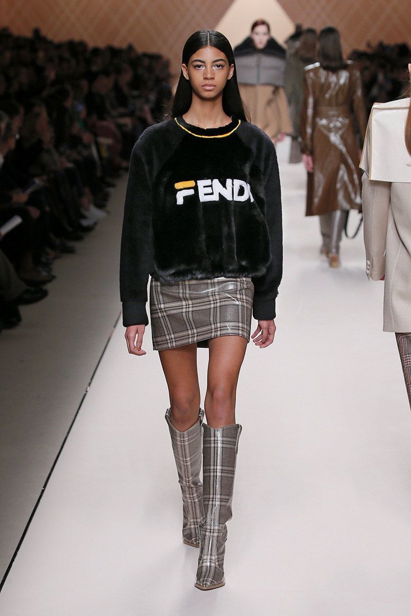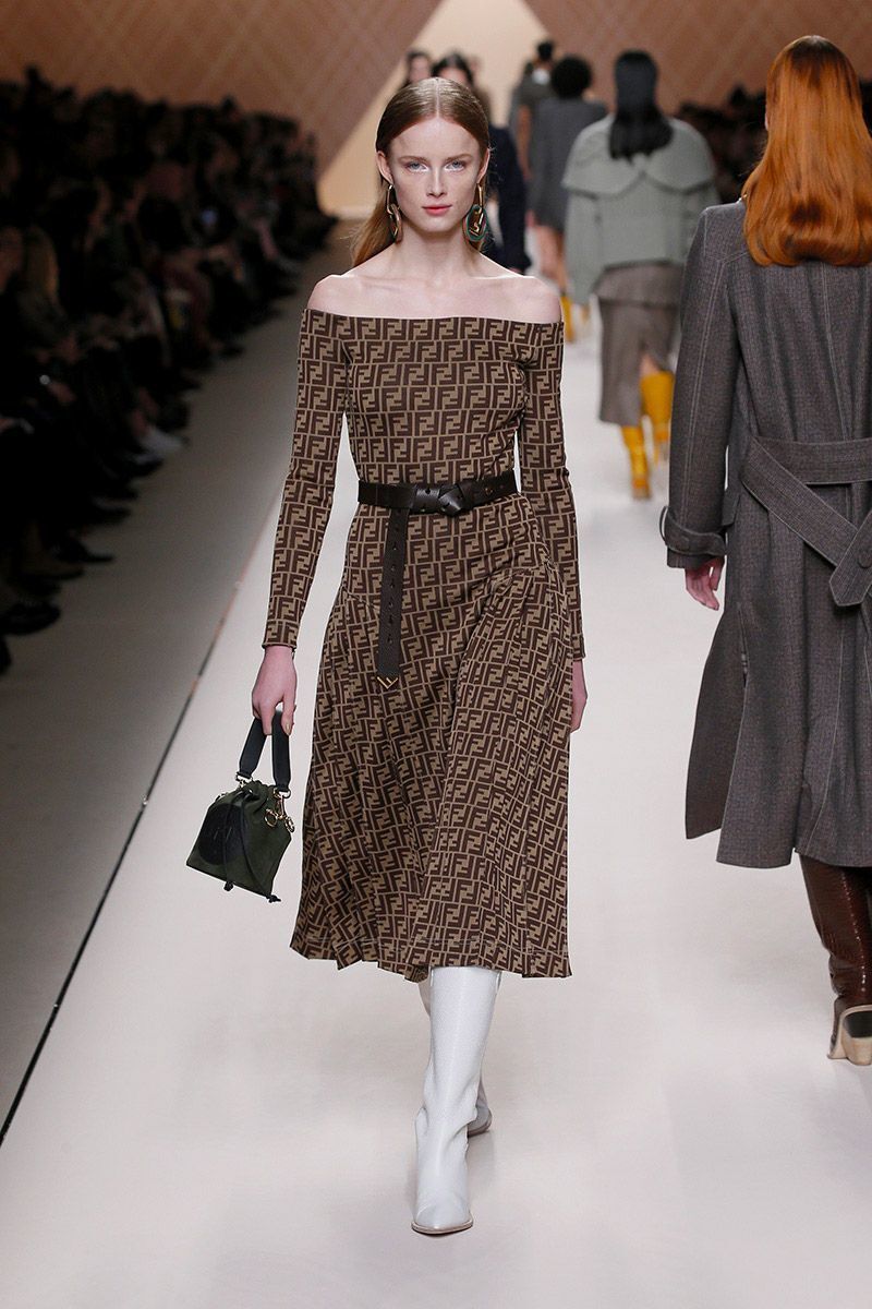 The collection is dominated by a wave of subtle shades from white, nude, brown, grey - to black. But if you feel a little rebellious, reach for the striking mustard shade. The luxurious Fendi incorporated it into sweatshirts, polonecks, and ankle as well as high boots.