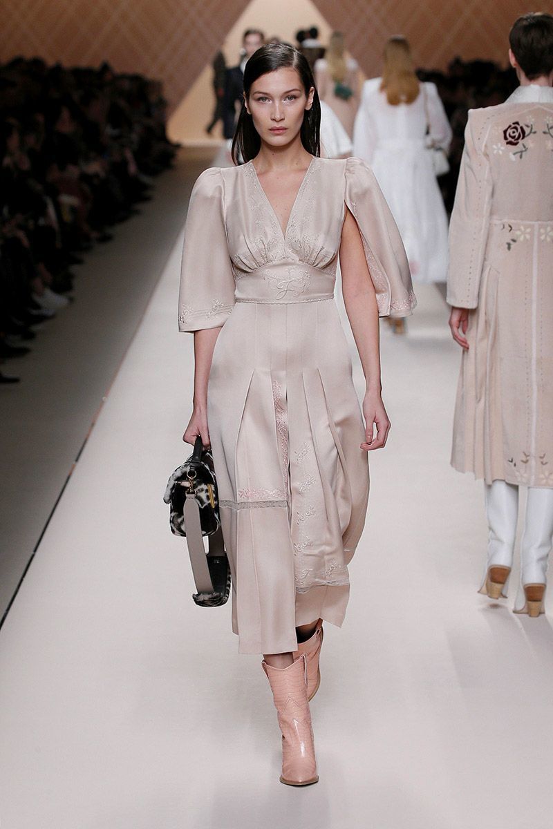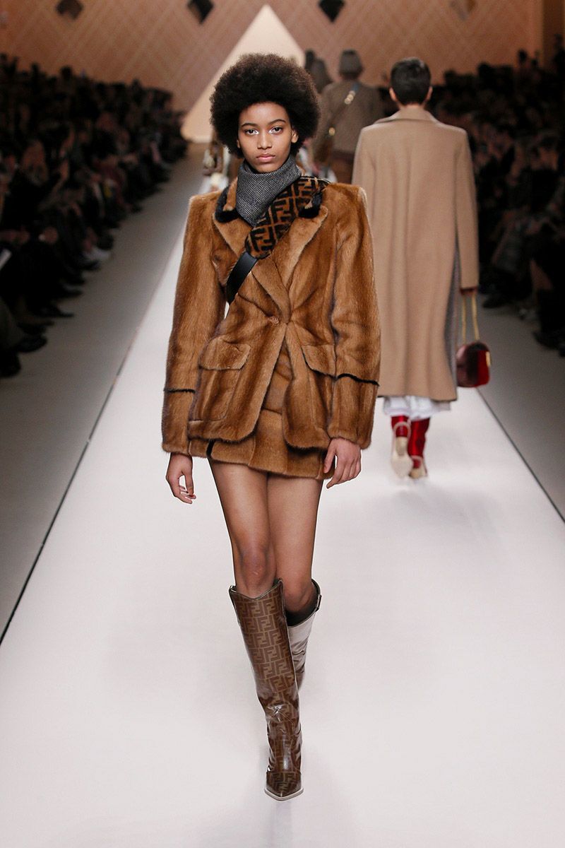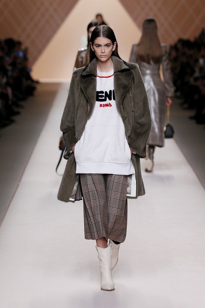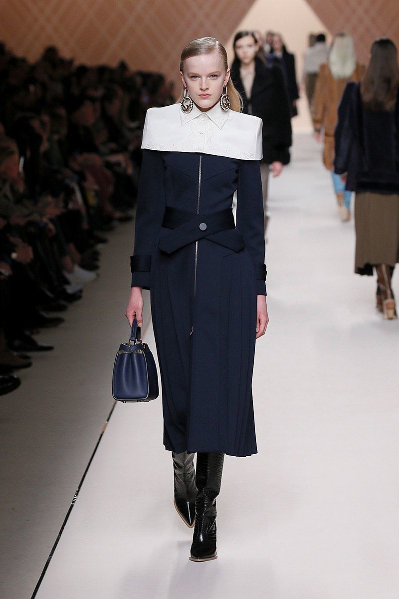 The collection is dominated by a wave of subtle shades from white, nude, brown, grey - to black. But if you feel a little rebellious, reach for the striking mustard shade. The luxurious Fendi incorporated it into sweatshirts, polonecks, and ankle as well as high boots.