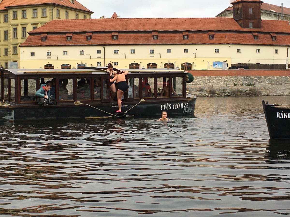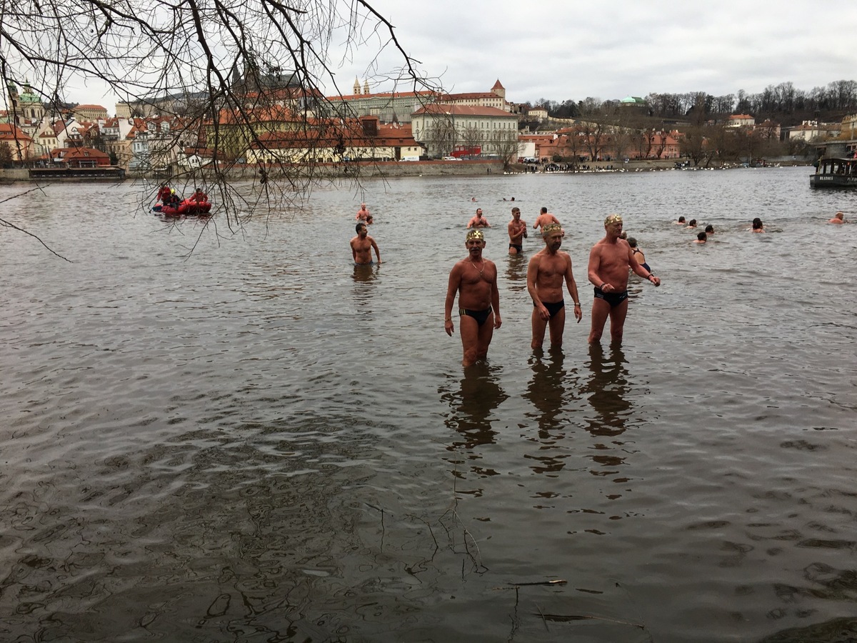 The hardies spent about seventeen minutes in the water. Those who had a longer history of "abusing" their bodies in this way then managed to stay on dry land for another twenty minutes. After this period of time, the body begins to produce heat, due to which it starts to shake and it is therefore necessary to warm it up. In addition to changing into dry and warm clothes, the hardy swimmers had ferryman's punch to help them feel comfortable, thus symbolically toasting the Charles Bridge Museum.