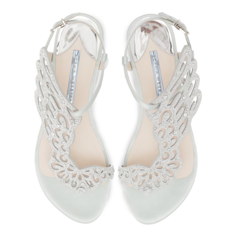 Sophia Webster is a skilled artist and draws her own design by hand at her studio, located in east London. Her ladies’ footwear includes original and fun models with heels of all heights, flats or tennis shoes for casual wear. We, however, have focussed on her wedding collection, which is truly luxurious.