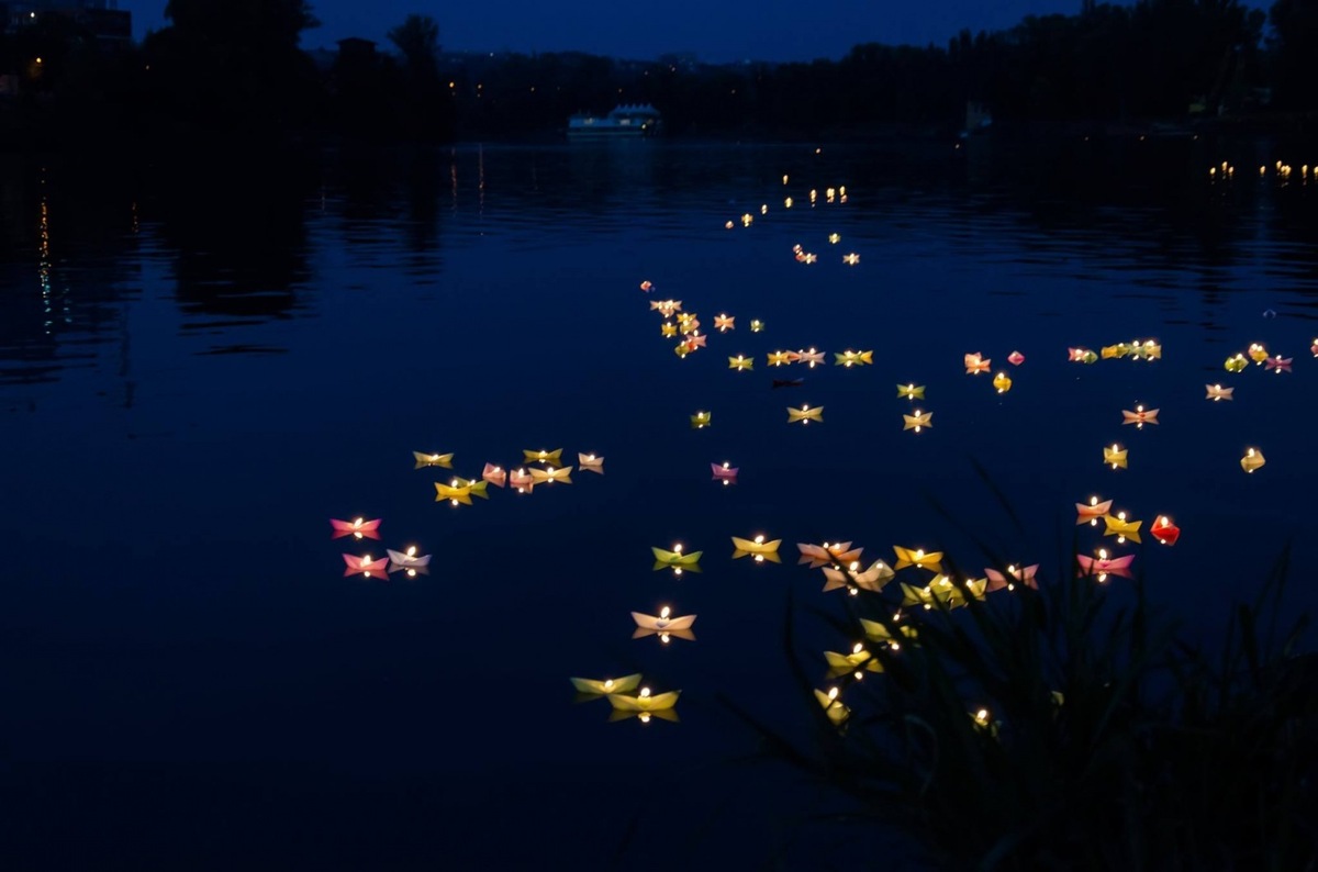 The first launching of candle boats, which took place three years ago, was attended by only a few people. This year, the organizers wanted to break the record and released 1,200 candle boats. World records registrars were therefore also present, but unfortunately it was not possible to launch enough boats to break the record due to the weather.