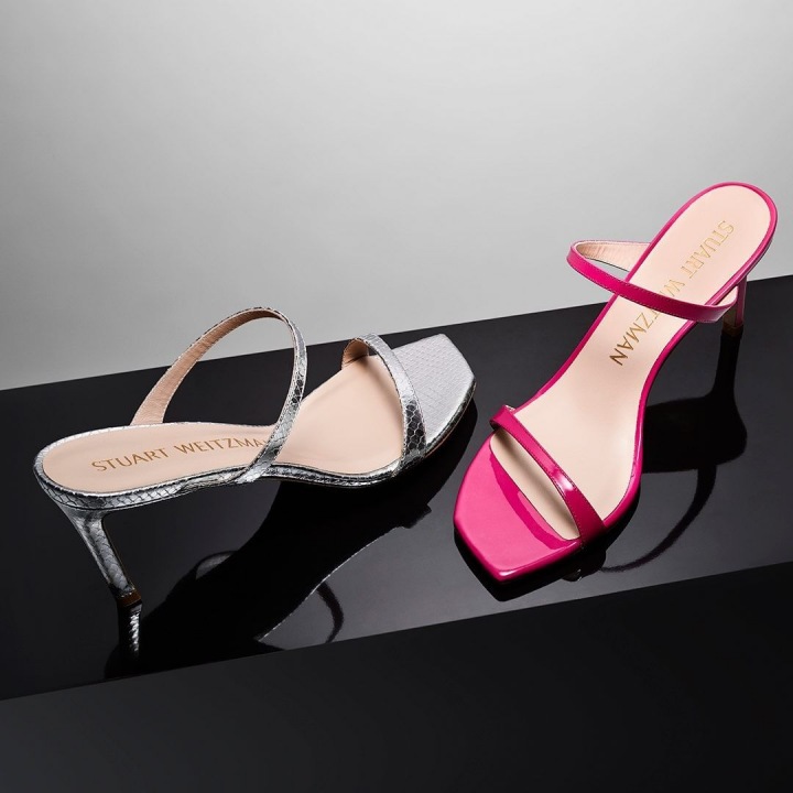 Designers, models and famous personalities alike fell in love with square tips, and we also enjoy them a great deal. One of the pieces that won our hearts is the comfortable pale blue model from Bally. Thanks to its low heels, you can finally forget about sore soles and joints without sacrificing the slightest bit of elegance. If you dare to go for a bolder shade, you can try the refined pink model from Stuart Weitzmam or the luxurious metallic Ann Talyor sandals.