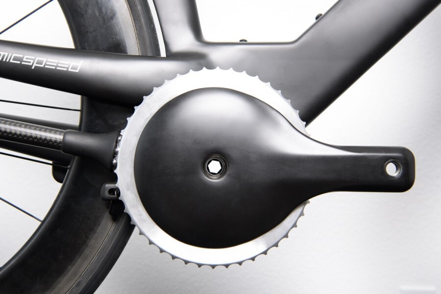 Not only is there no chain on this bicycle but, in addition, there is no bike shifter or pulley. Ceramic Speed developed the new DrivEn system that uses 21 ceramic bearings allowing the bicycle to reach 99% efficiency. Energy is transferred directly to the rear wheel with every step in the pedals. You will go faster while exerting less energy during the ride. The DrivEn technology rightfully won the prestigious Design Award.