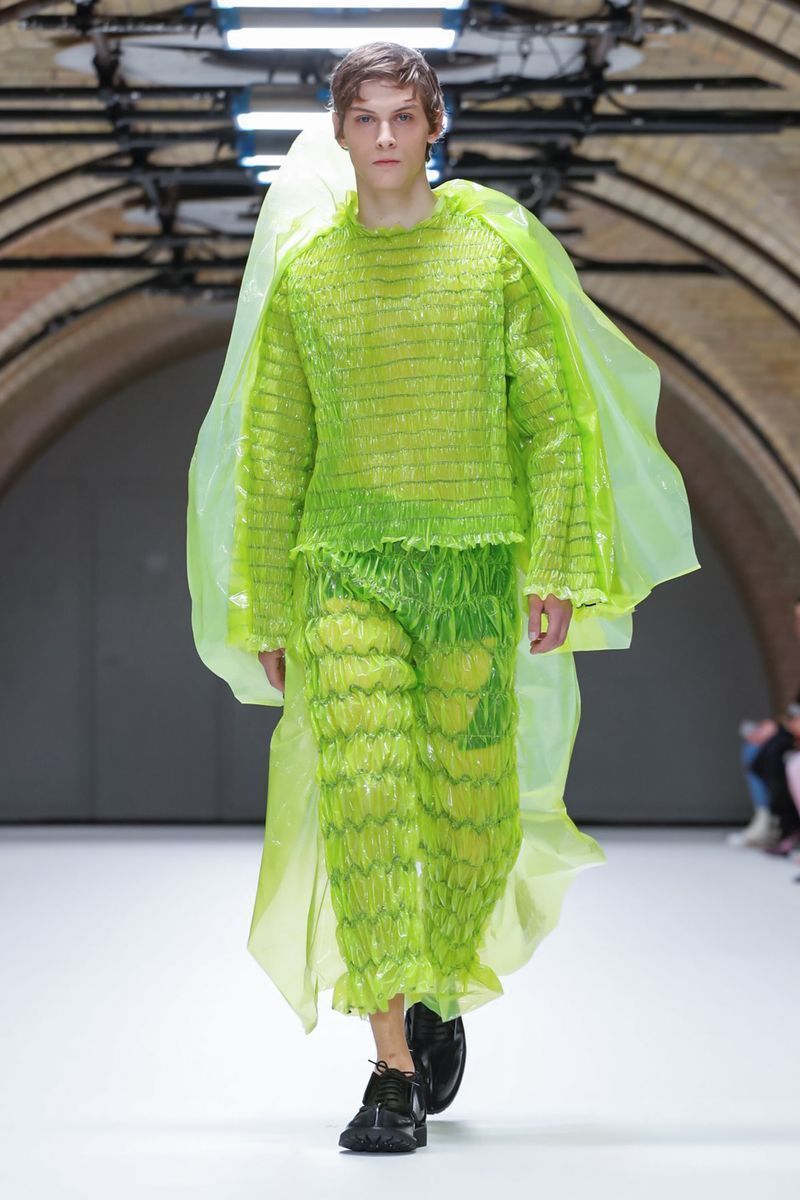 The Austrian fashion designer, Helmut Lang, showed us a perfect example of fashion for mass murderers. Do you want to kill someone in the middle of the park with a machete, and not have a single trace of DNA of the victim? The neon plastic bags by Lang will definitely provide you with the necessary comfort. We only hope, that these items are recyclable. We don’t want to carry on polluting the natural beauty of international waters!