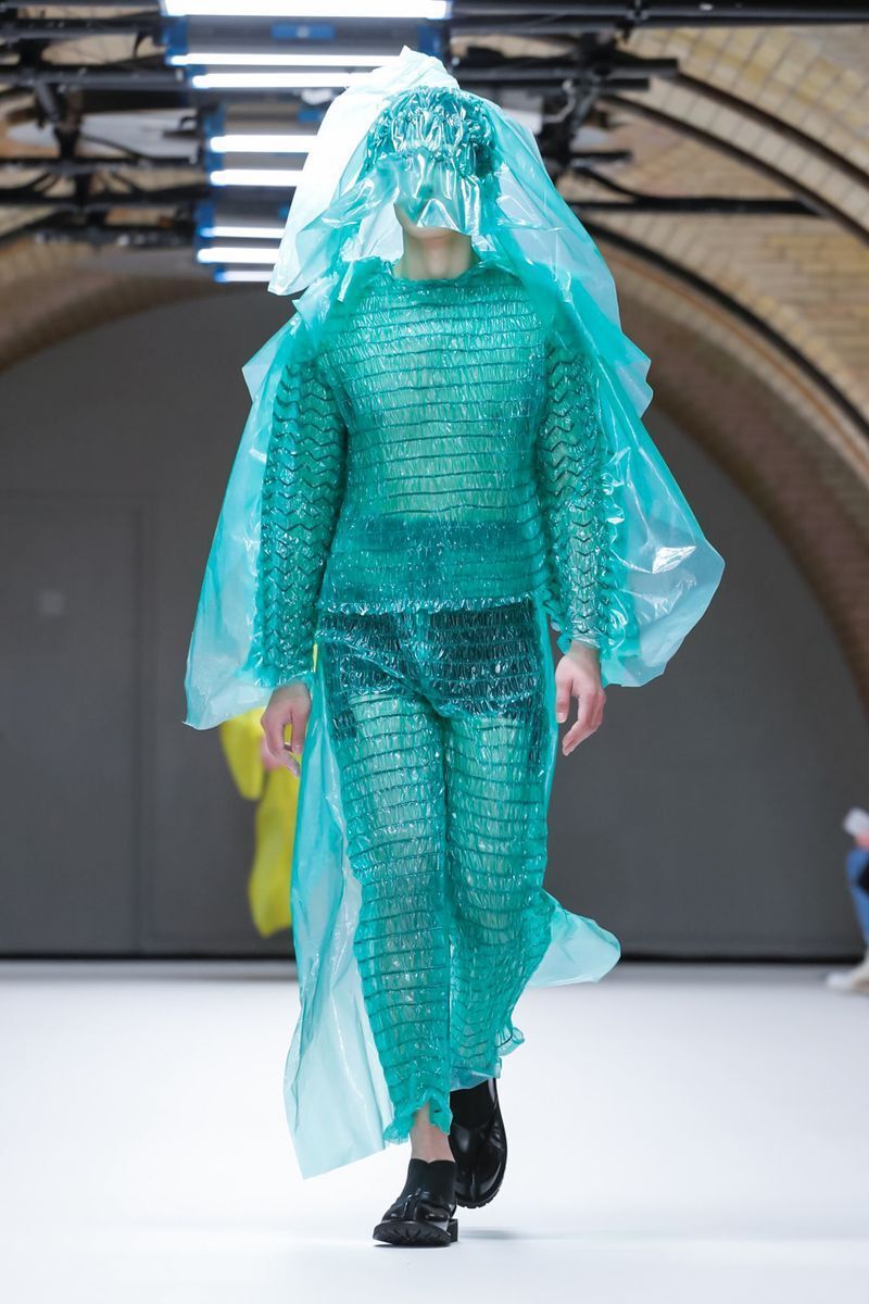 The clothes are made from bubble wrap reminiscent of plastic wrapping, of which we have more than enough in our lives. Not only does it look terrible, but it probably gets very hot in them as well. Thumbs down.