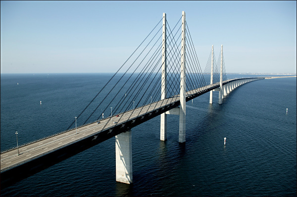 The Danes are by far the leaders in bridge building. The bridge over Öresund Bay is the longest bridge in the world linking two different countries. You can cross it by car or by train. The whole of this transport structure, which measures a total of 16 kilometres, took five years to build. You can get from Copenhagen to Malmö by car in about 35 minutes. Or will you be going to Sweden by boat? In addition to this, a few wind turbines rise out of the sea nearby, enhancing the overall impression which verges on the apocalyptic.