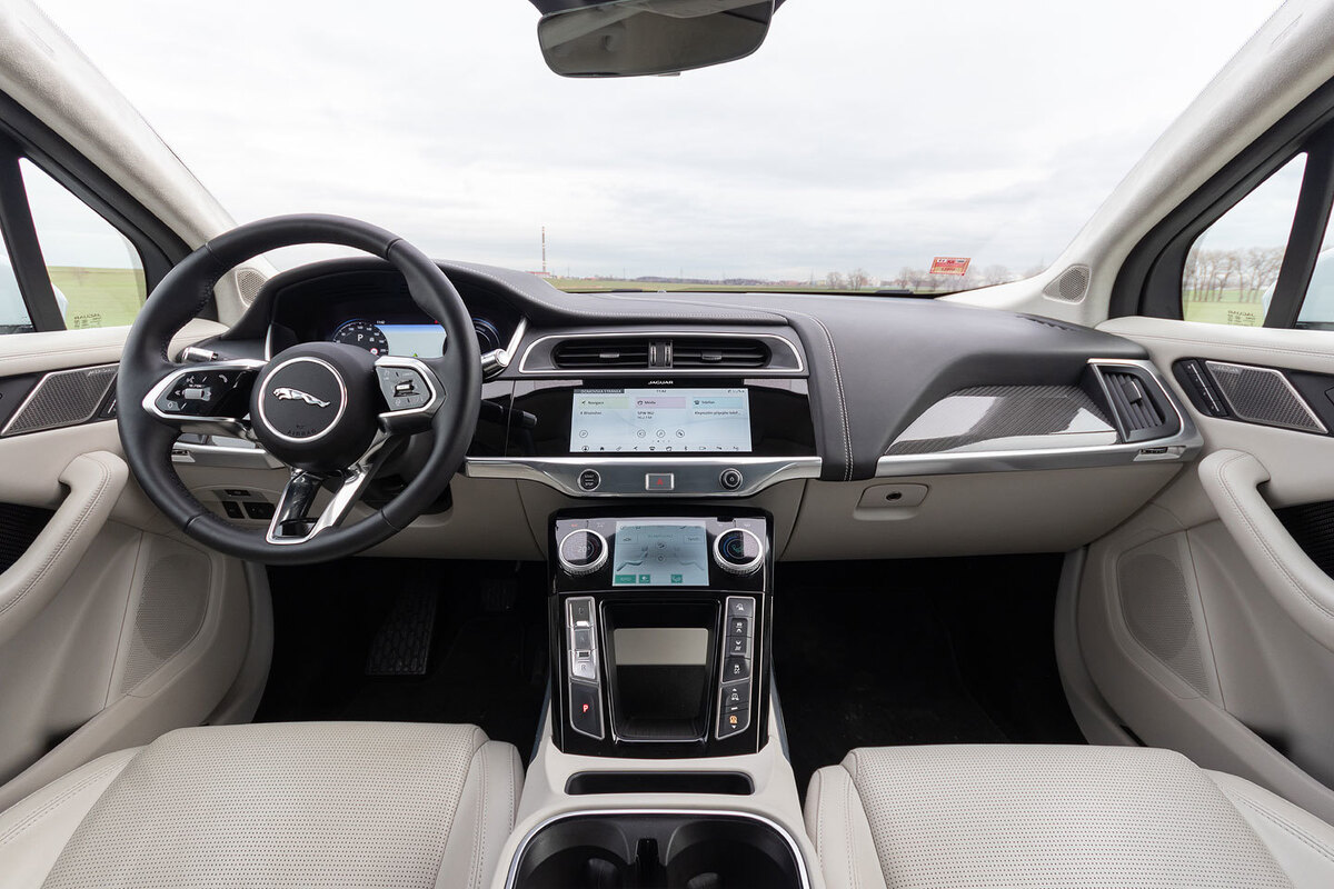 The Jaguar I-Pace is an electric SUV, there is a 400 Hp motor under the hood. Torque is 700 Nm. Acceleration from 0 to 100 km is in 4.8 seconds. It will reliably transport you to a distance of 480 km. The quick battery charge mode will save you a lot of time as 80% of the battery will be charged in 45 minutes. When charging the battery at home, the battery is fully charged in approximately 10 hours. The interior is spacious, luxury and modern, and is equipped by two touch screens installed one above the other.