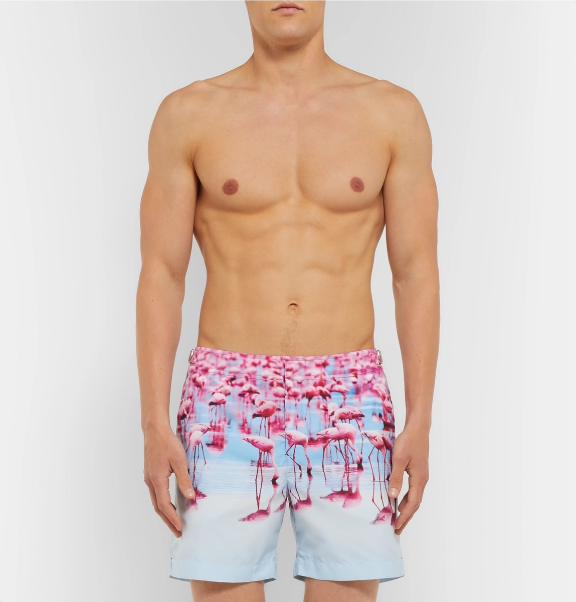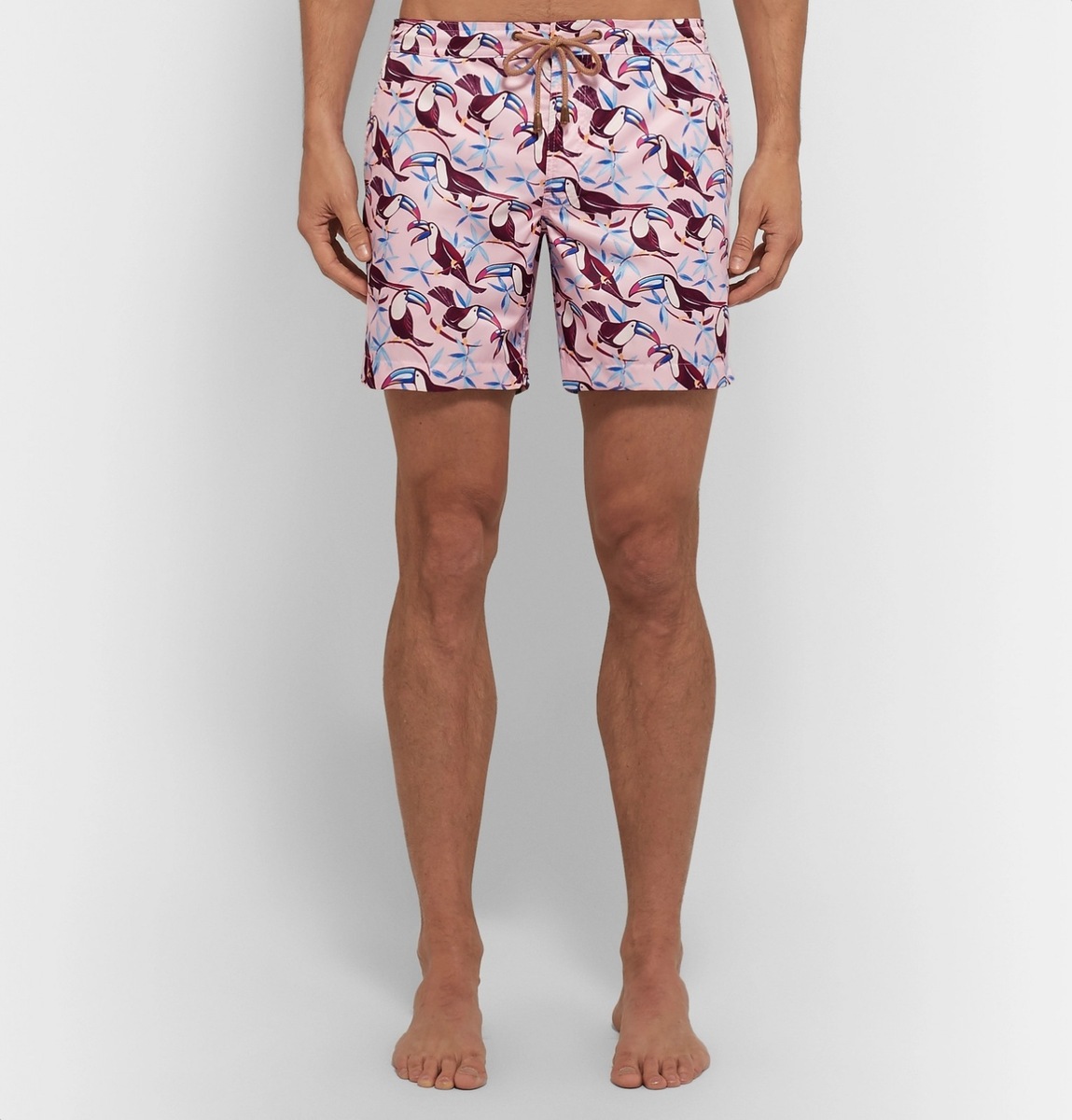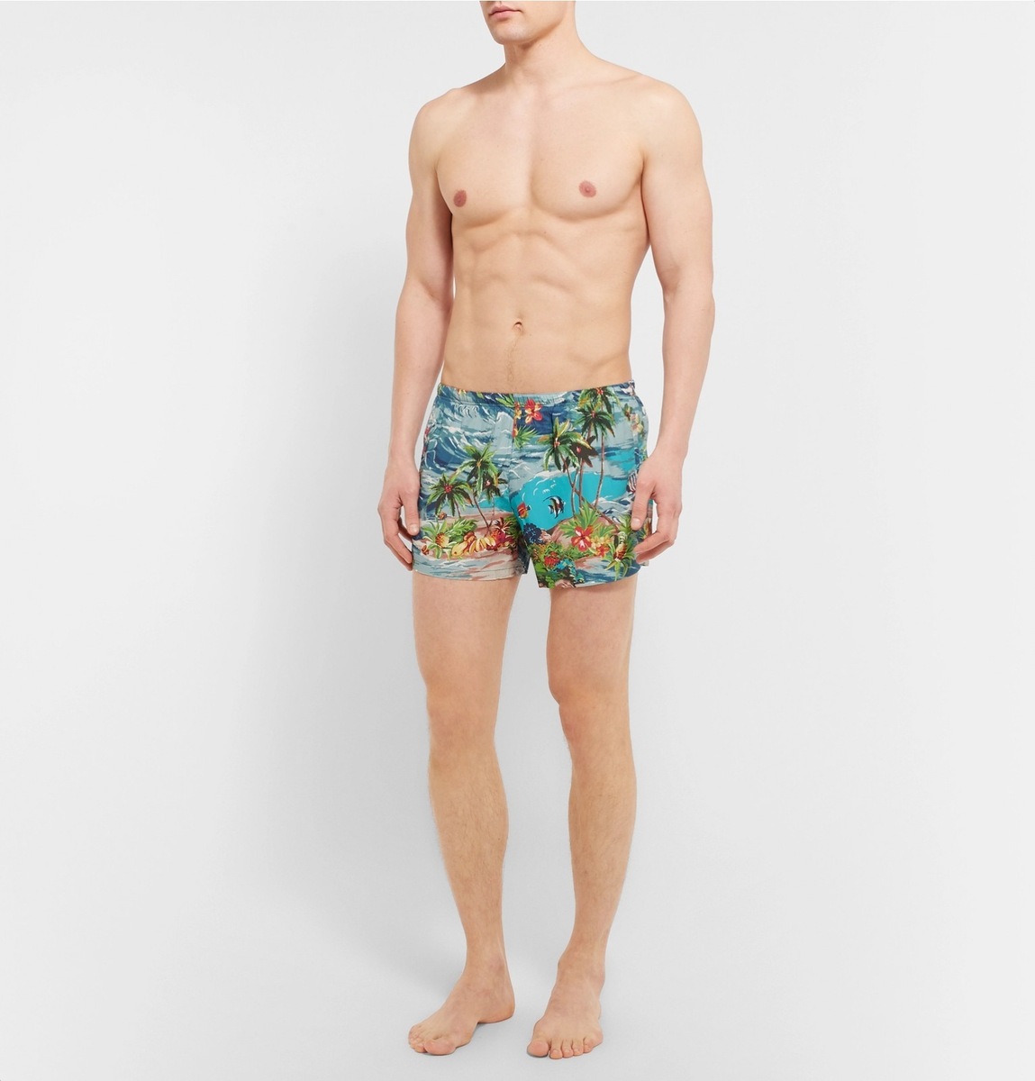 The animal kingdom has become a favourite designer motif. Luxurious brands like Paul Smith, Orlebar Brown, and Thorsun present playful pieces with flamingo, toucan, tuna or sea fish motifs. In addition, Orlebar Brown applied summer scenery to its designs in the form of pools or cliffs.
