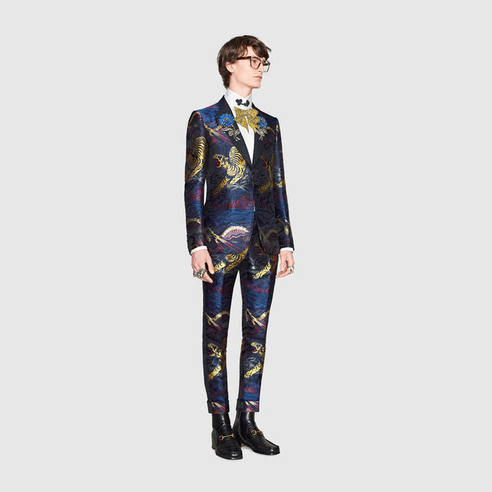 The range of tuxedos in which you can ring in the New Year or shine on another occasion is vast! You can choose from extravagant pieces by Gucci, made of luxurious shiny materials, Jacquard fabrics and unconventional patterns – the mighty tiger or romantic blossoms. If the event requires a less extravagant outfit, reach for luxury brands that remain loyal to a more formal style – Hugo Boss, Brunello Cucinelli, Dior, Giorgio Armani, Saint Laurent, Ralph Lauren, Tom Ford or Ermenegildo Zegna
