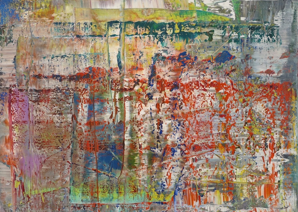 Gerhard Richter also engaged in abstract works. A lot of these are characterised by their great colourfulness. Layering is evident in them. Paints are applied and spread with a spatula in various directions, smearing some of the layers and emphasising others.