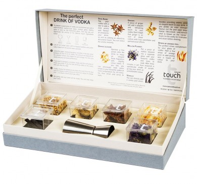 This luxurious set of herbs by Special Touch is designed for lovers of luxury vodka cocktails which stand out in the crowd with their exotic aroma. The box contains six selected ingredients which go particularly well with vodka: vanilla pods, orange blossom, orange strips, ginger, star anise and mallow flower. The set includes a cocktail measuring cup – a jigger and instructions on how to serve and mix cocktails.